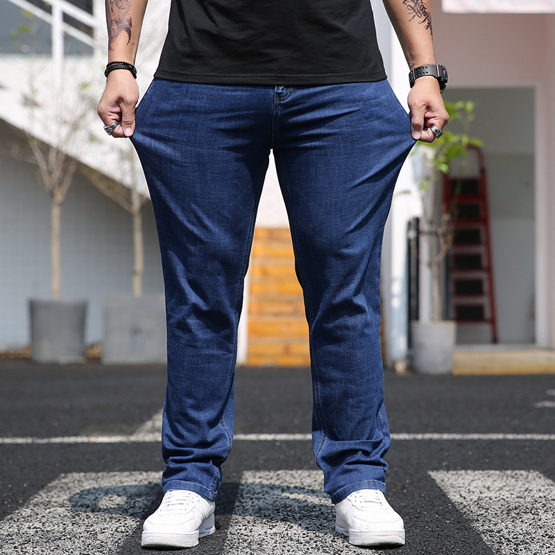 플러스 사이즈 남자의 얇은 청바지 느슨한 편안한 플러스 팻 플러스 플러스 뚱뚱한 남자의 비즈니스 캐주얼 모든 매치 데님 바지 남성용