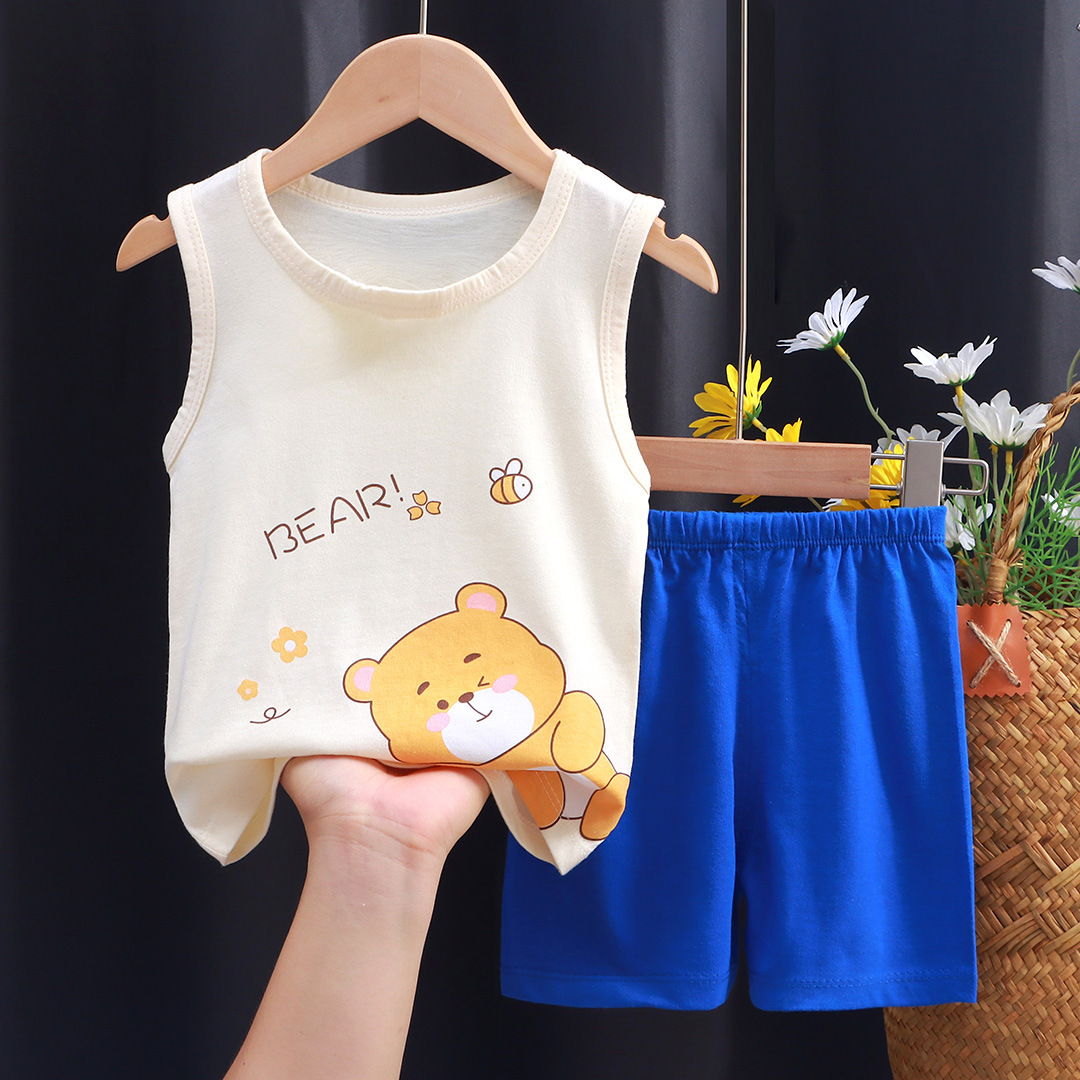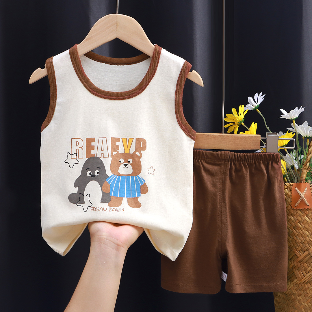 어린이 조끼 세트 면 민소매 소녀 여름 한국 아동복 새로운 여름 소년 2 피스 도매