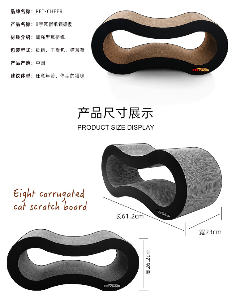 Petcheer8-shaped 골판지 고양이 스크래치 보드 고양이 장난감 골판지 연삭 발톱 배달 개박하 고양이 용품스토어 가기