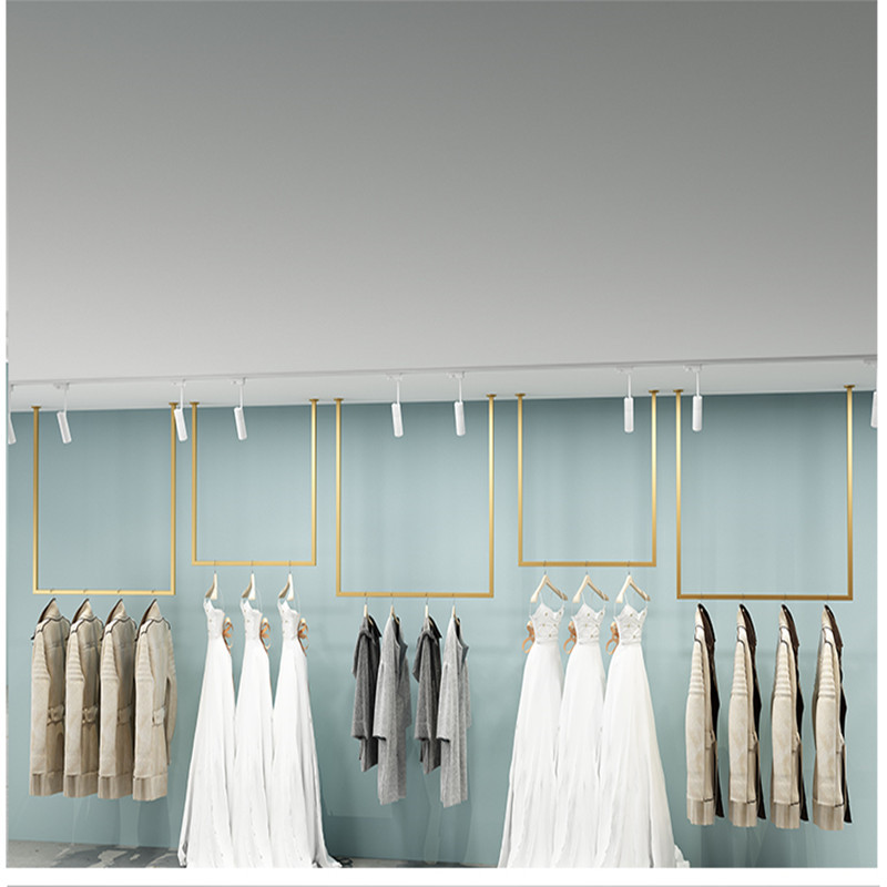 婚纱店金色高档服装架 服装店创意悬挂吊顶展示架简约服装陈列架 GO