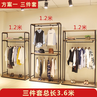 아메리칸 스타일 로프트 산업 스타일 플로어 투 플로어 행거 맞춤형 남성 및 여성 의류 매장 행거 레트로 디스플레이 랙스토어 가기