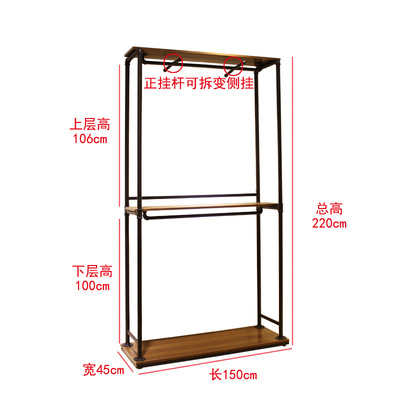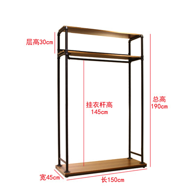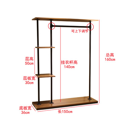 아메리칸 스타일 로프트 산업 스타일 플로어 투 플로어 행거 맞춤형 남성 및 여성 의류 매장 행거 레트로 디스플레이 랙