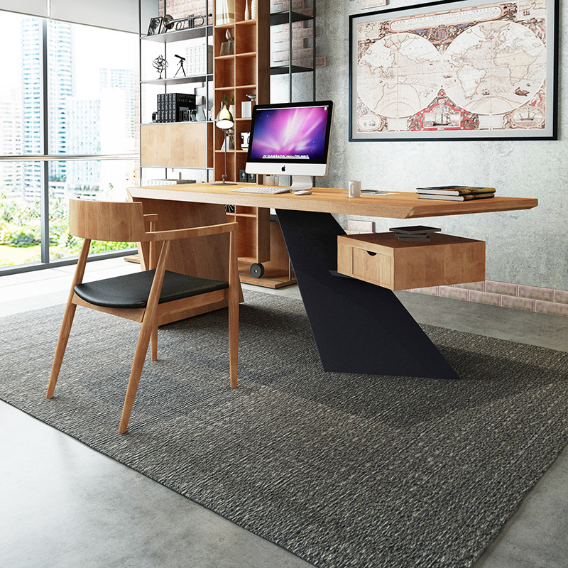 美式复古实木办公桌 办公室单人电脑办公桌简约铁艺接待洽谈桌 GO