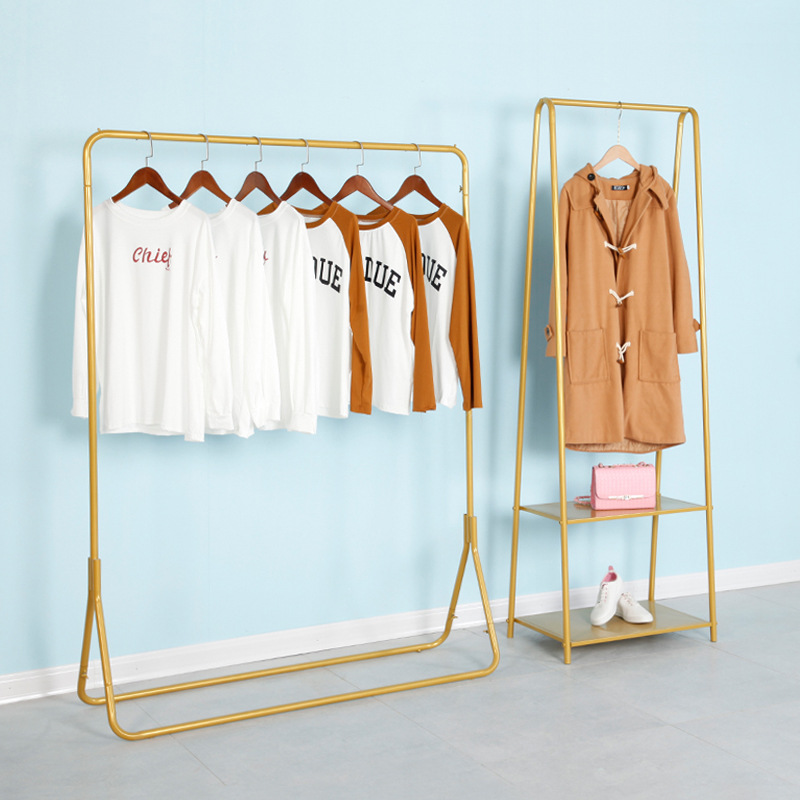 北欧简约落地挂衣架 卧室金色时尚服装架服装店落地式组合衣架 GO