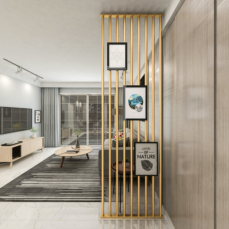 北欧铁艺隔断屏风 简约现代客厅金色镂空屏风装饰办公室玄关隔断 GO
