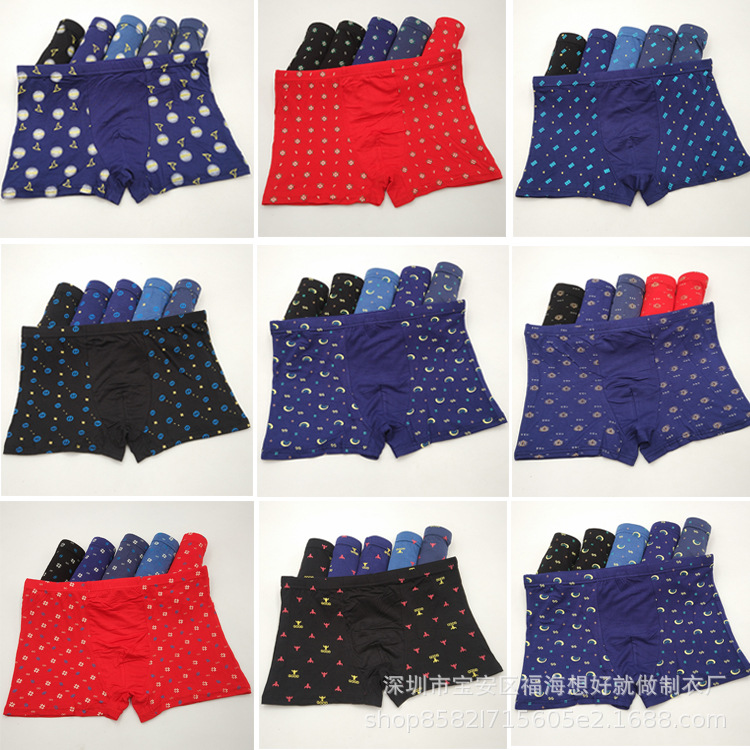신상품 남성용 속옷 모달 프린트 사각팬티 신축성 있는 사각팬티 제조업체 직판 도매스토어 가기