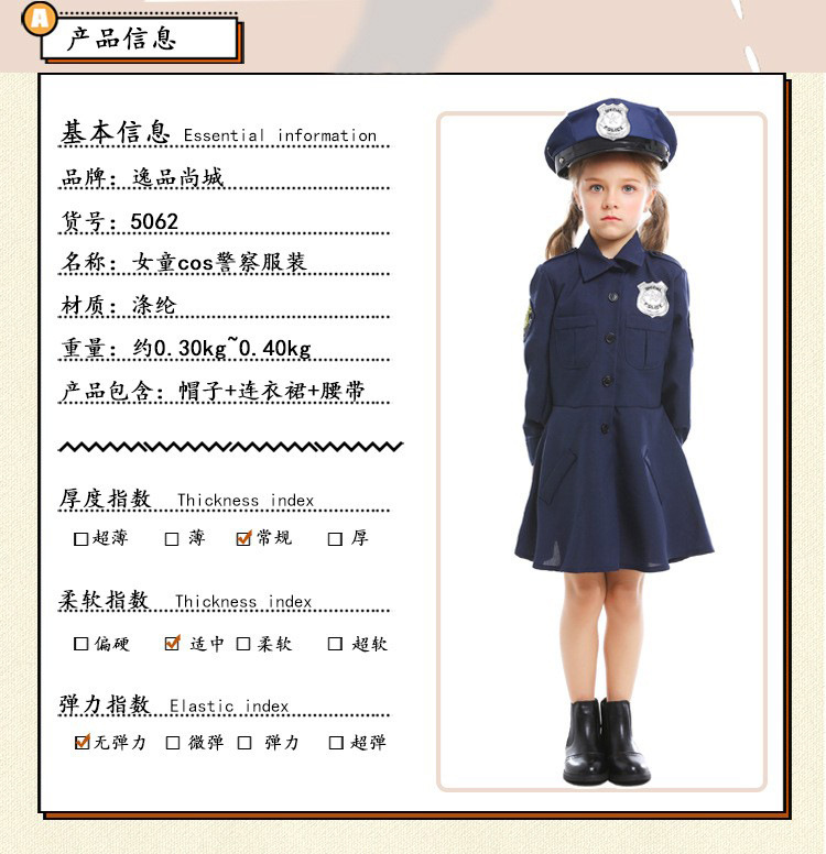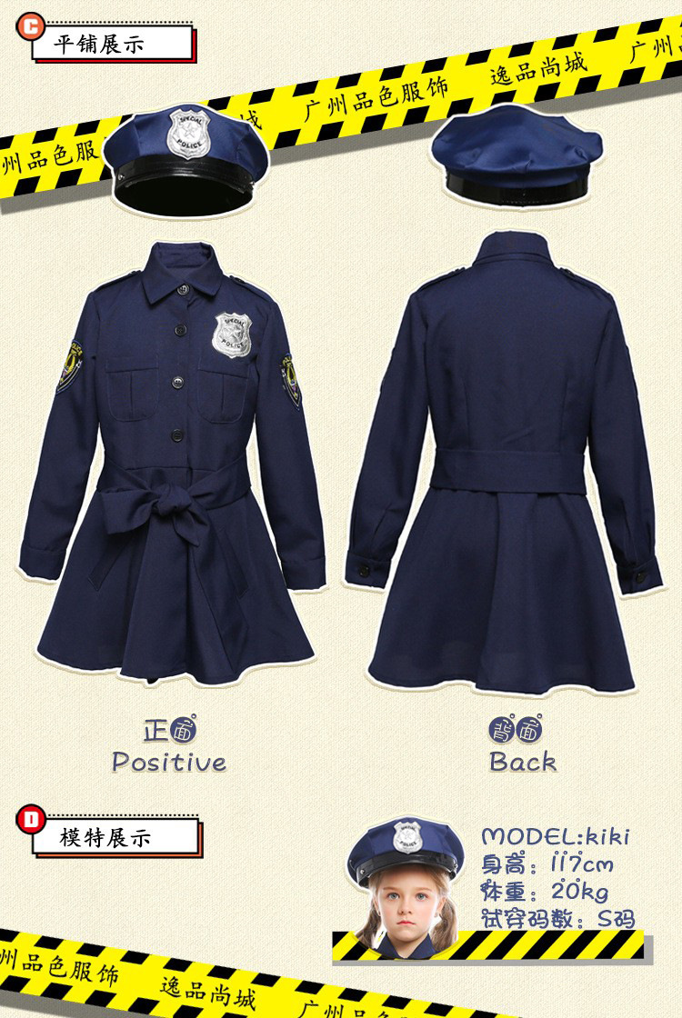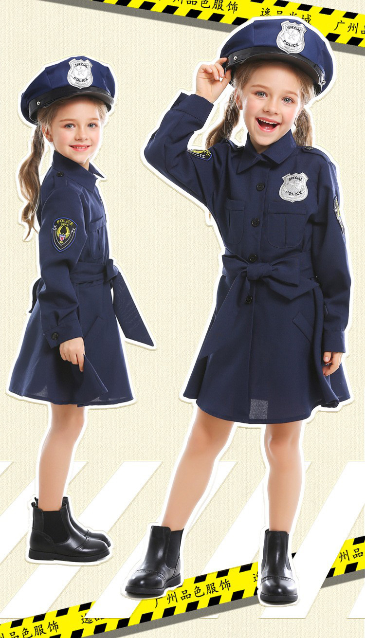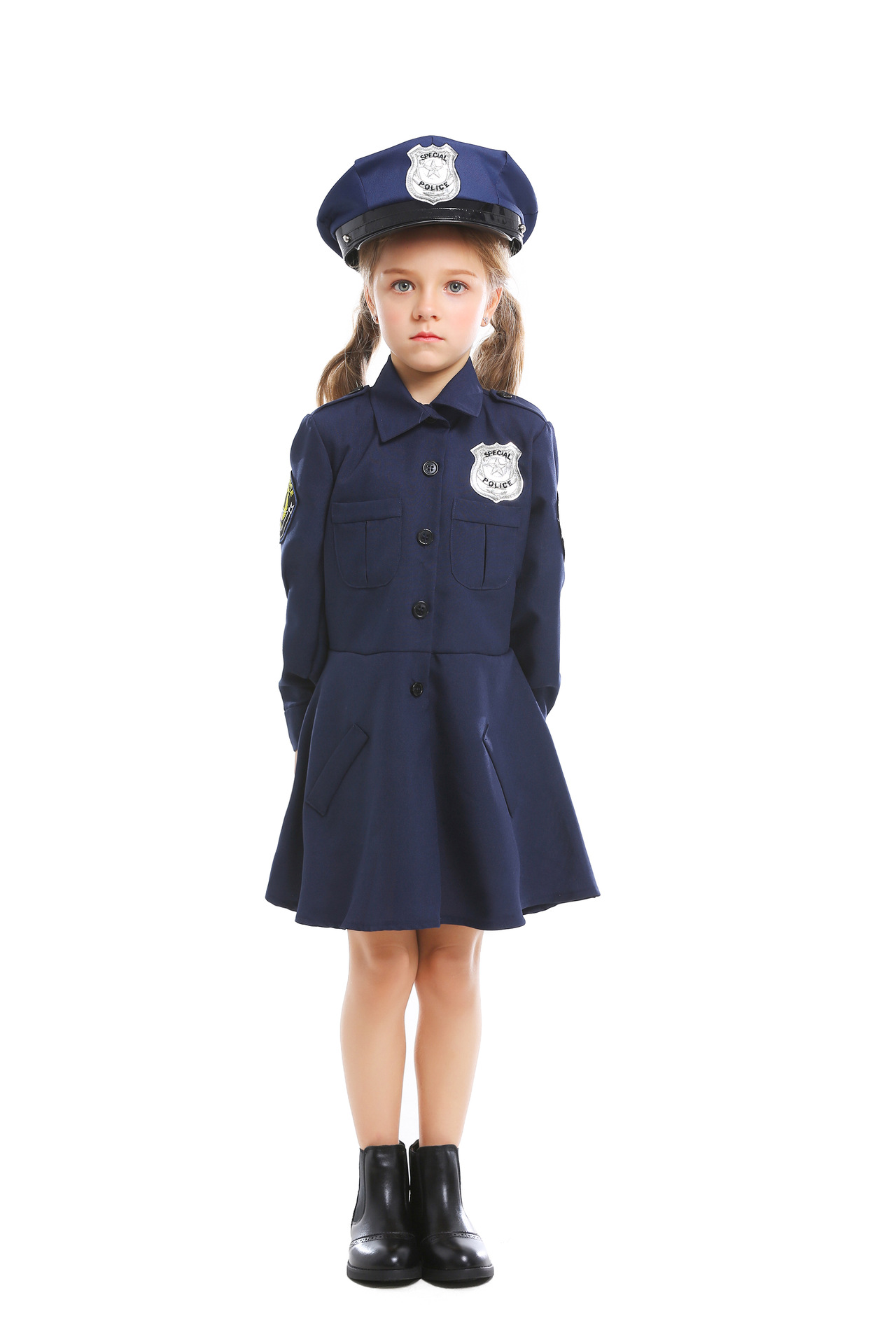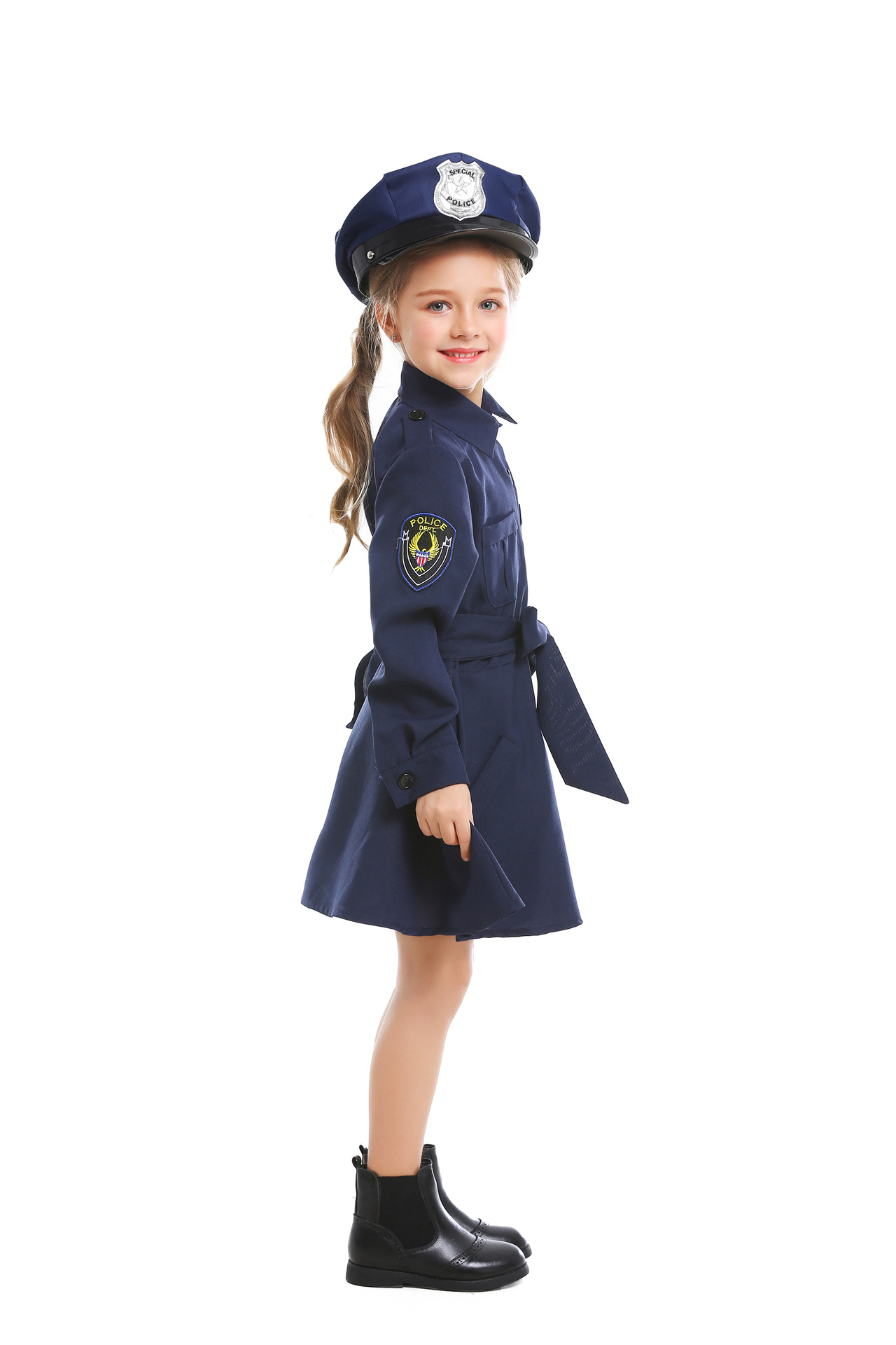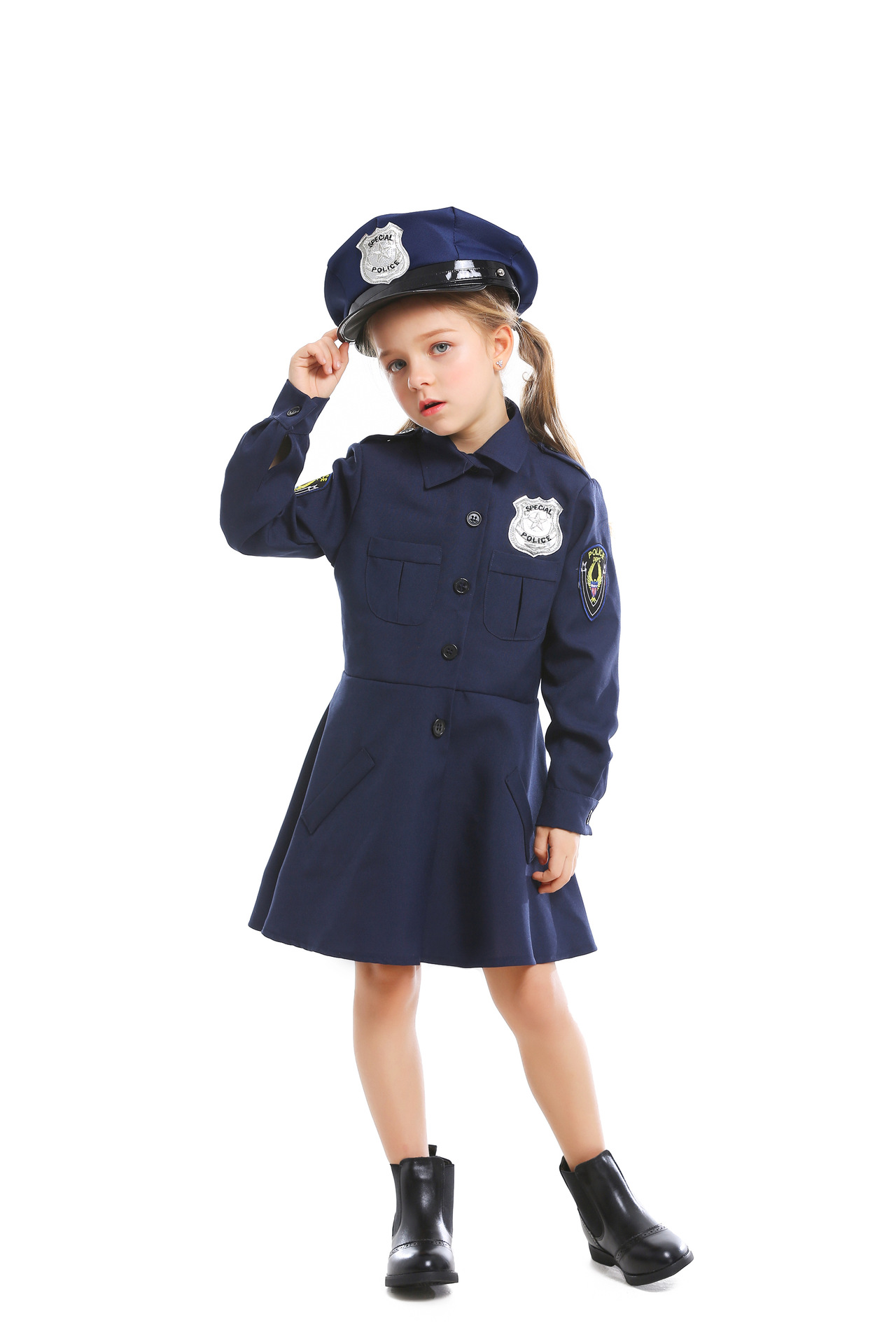 할로윈 어린이 원피스 의상 코스프레 귀여운 경찰 유니폼 소녀 슬림핏 긴 소매 경찰 원피스