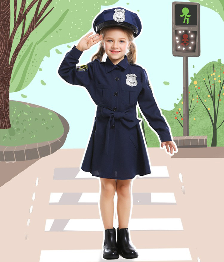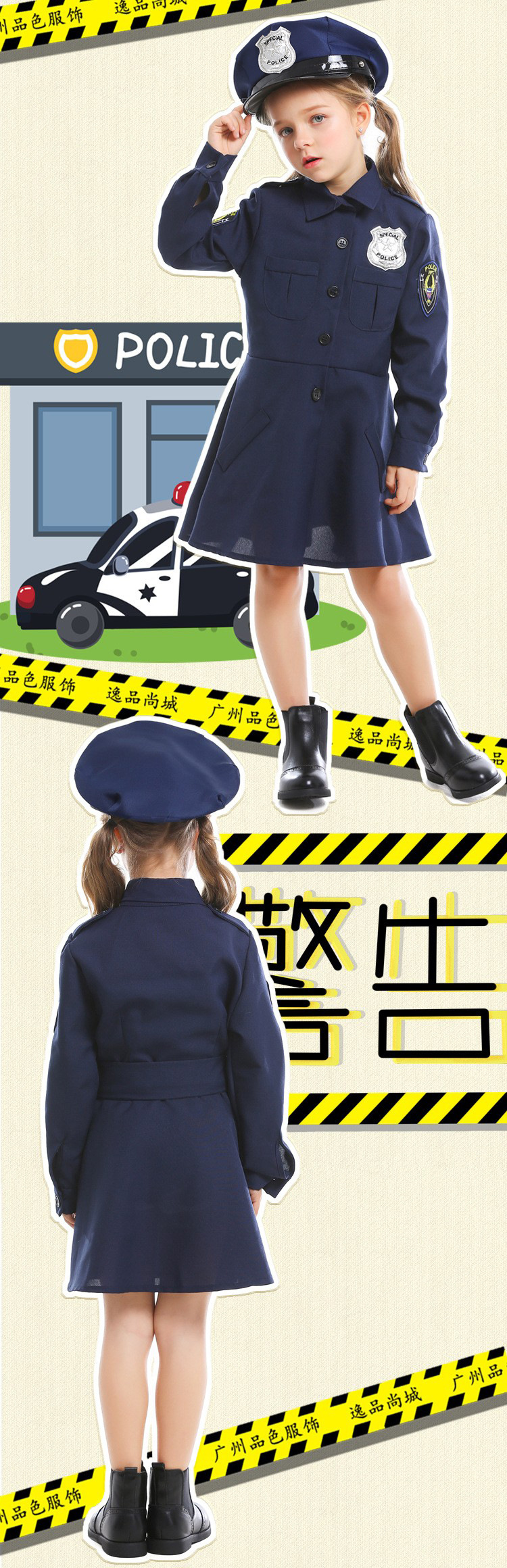 할로윈 어린이 원피스 의상 코스프레 귀여운 경찰 유니폼 소녀 슬림핏 긴 소매 경찰 원피스스토어 가기