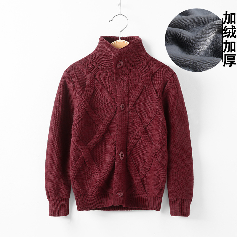재고 인 봄과 가을 스웨터 터틀넥 기모 두꺼운 카디건 단색 자카드 니트 코트 어린이 스웨터
