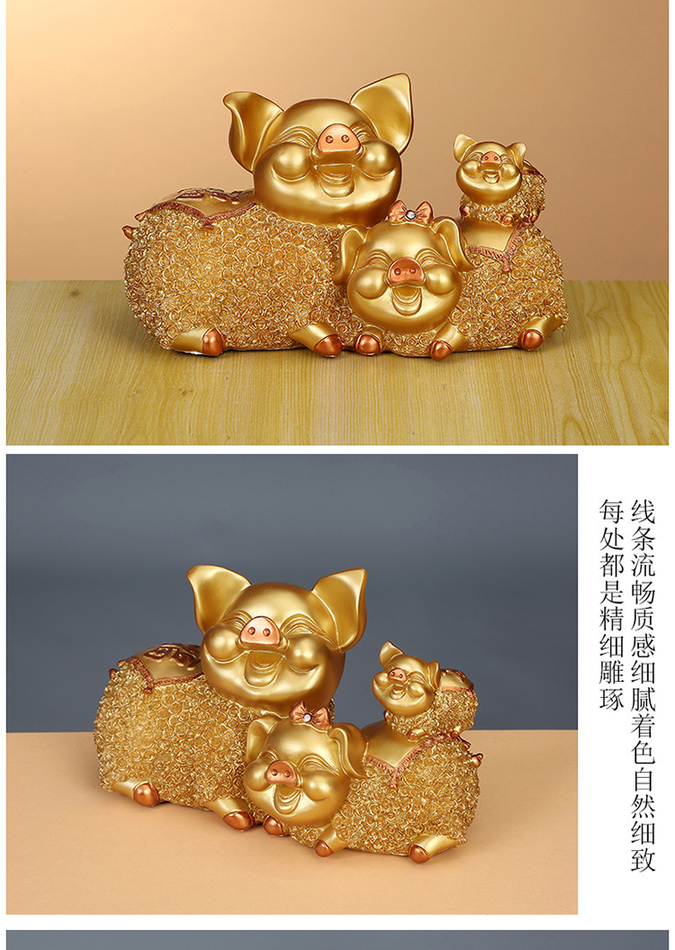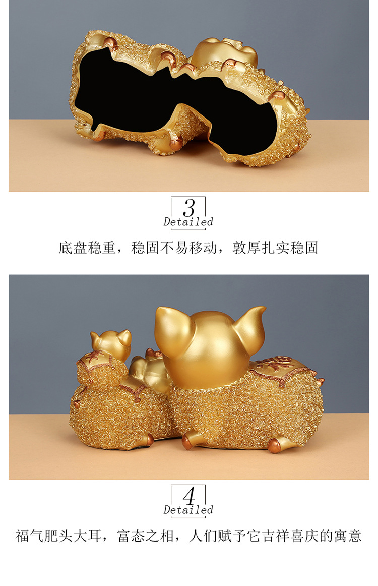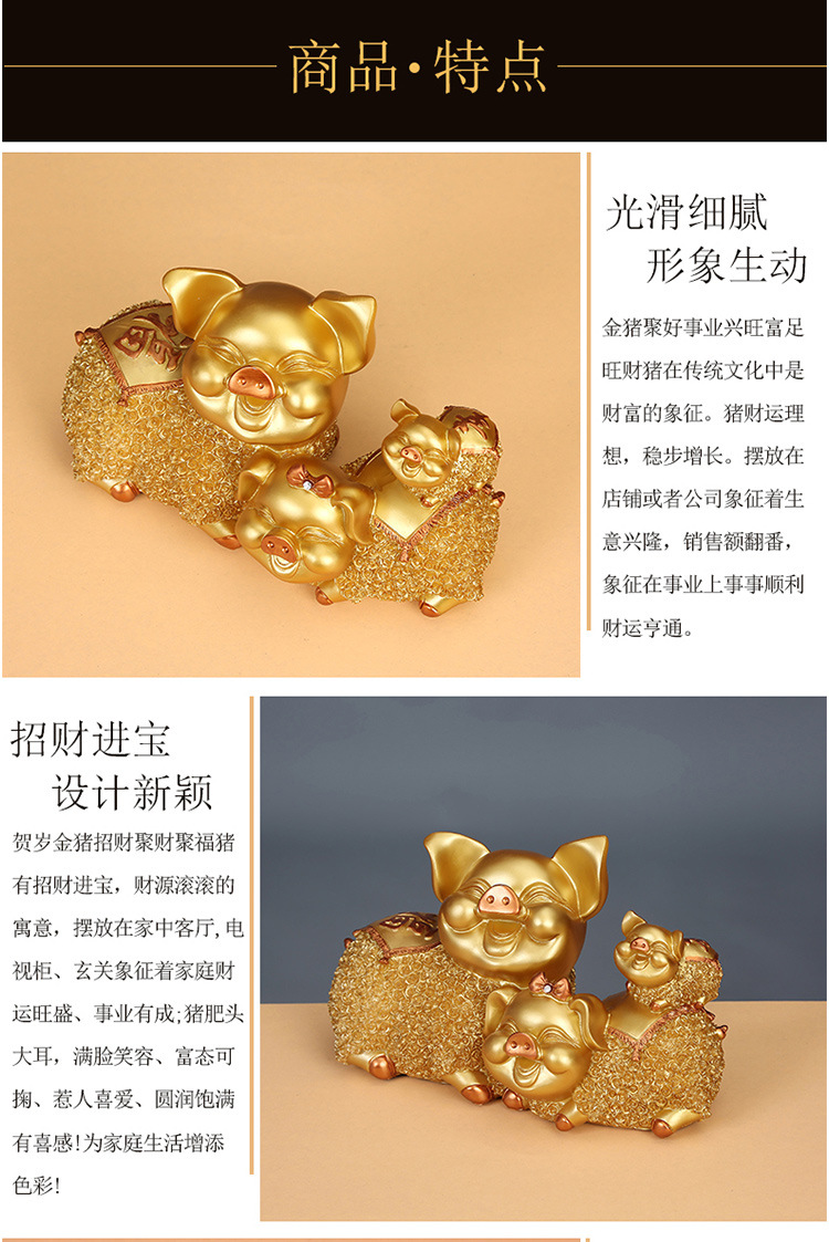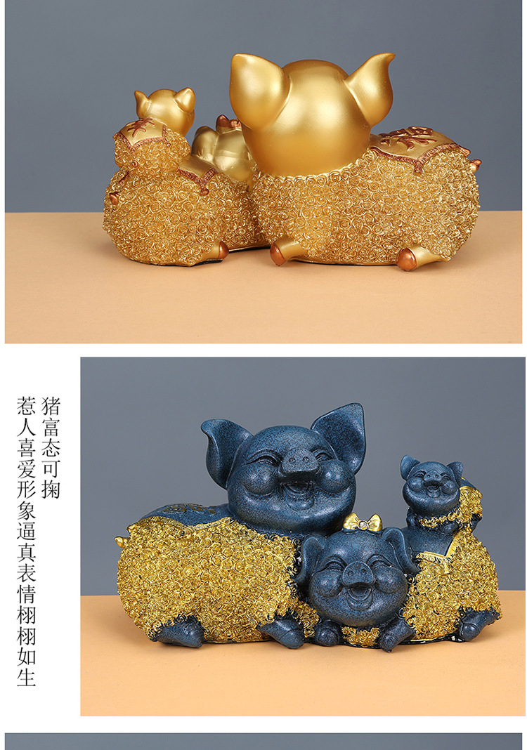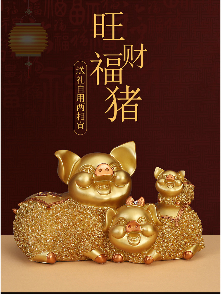 행운의 황금 돼지 장식품 수지 공예 홈 거실 액세서리 크리 에이 티브 TV 캐비닛 와인 캐비닛 장식 가구