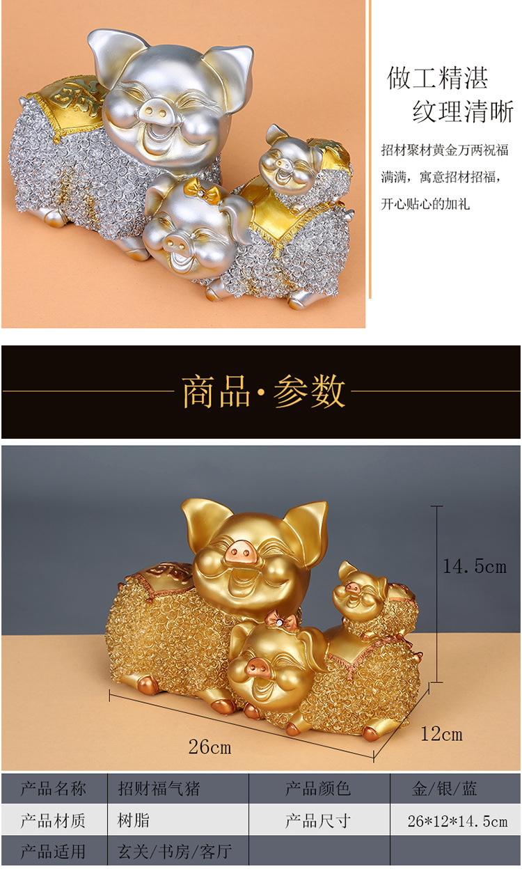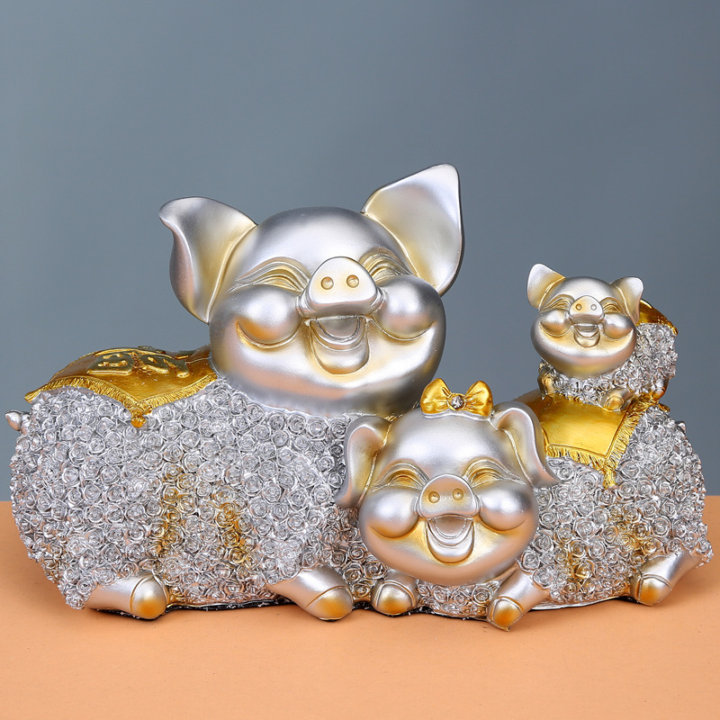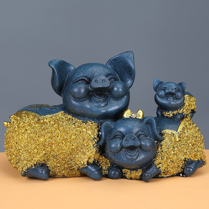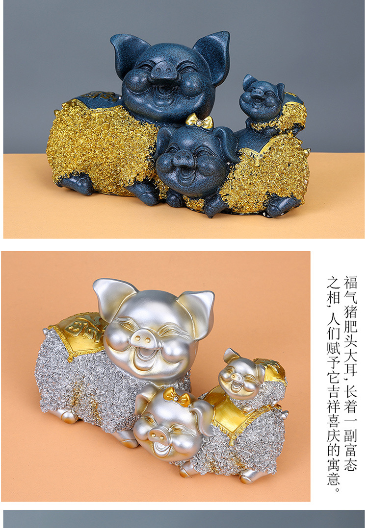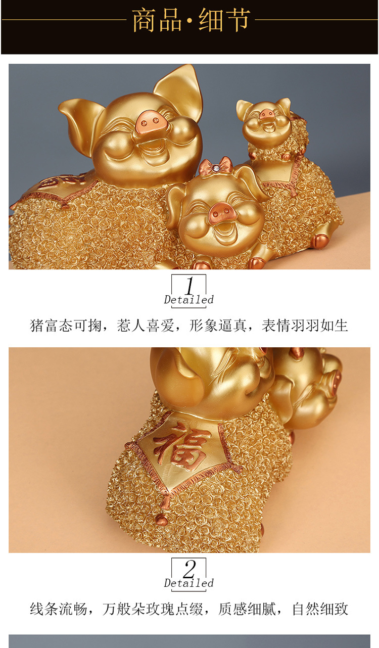 행운의 황금 돼지 장식품 수지 공예 홈 거실 액세서리 크리 에이 티브 TV 캐비닛 와인 캐비닛 장식 가구