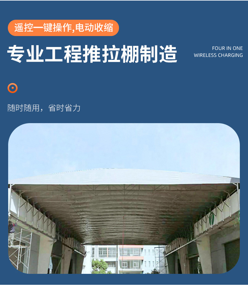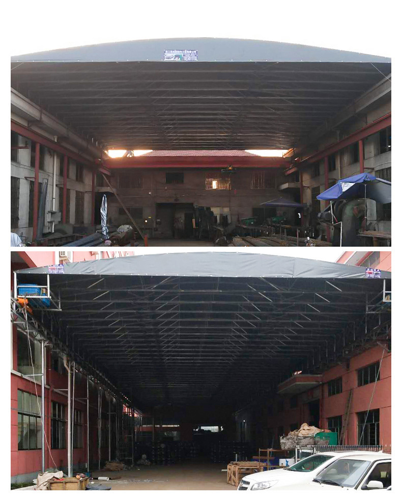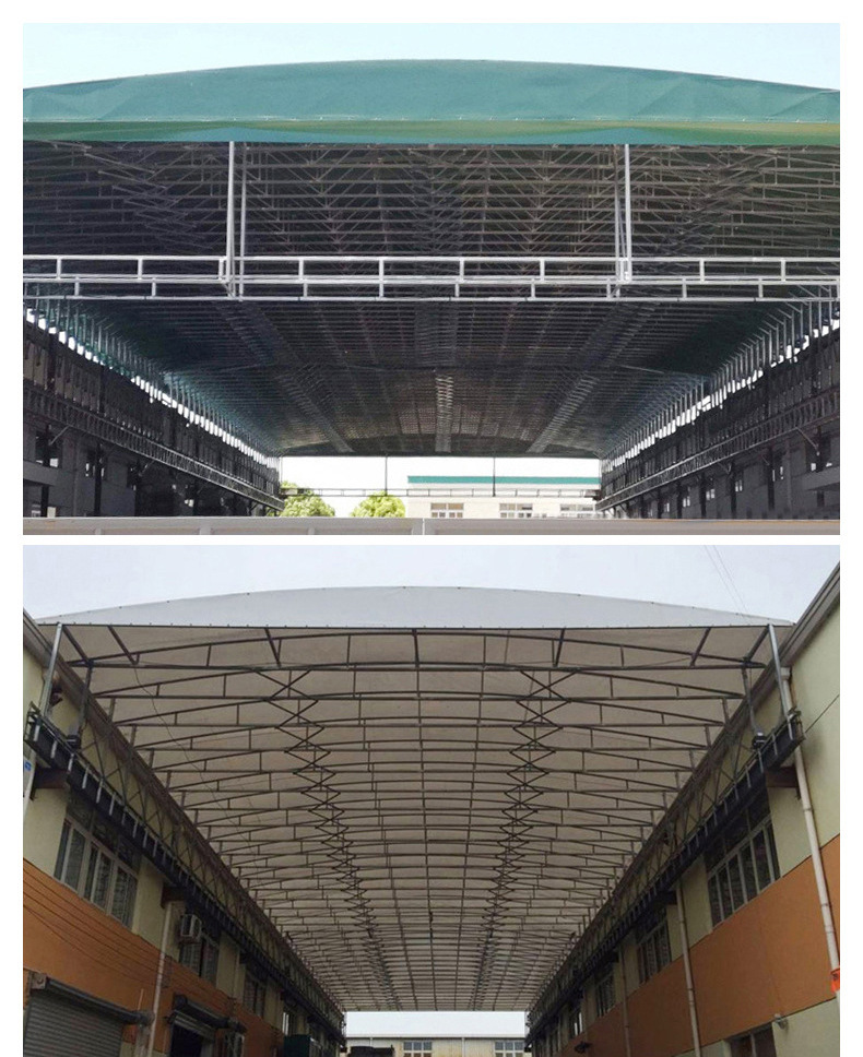 절강 소흥 Quzhou Lishui 전기 슬라이딩 캐노피 야외 모바일 슬라이딩 차양 접이식 창고 차양