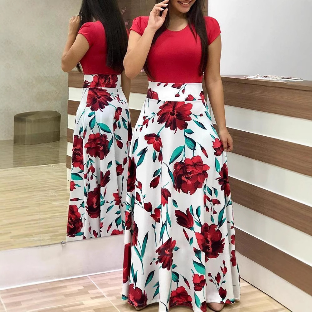 2025wish 알리익스프레스 가을 핫세일 유럽풍 플라워 프린트 배색 원피스 롱드레스 긴팔 여성복