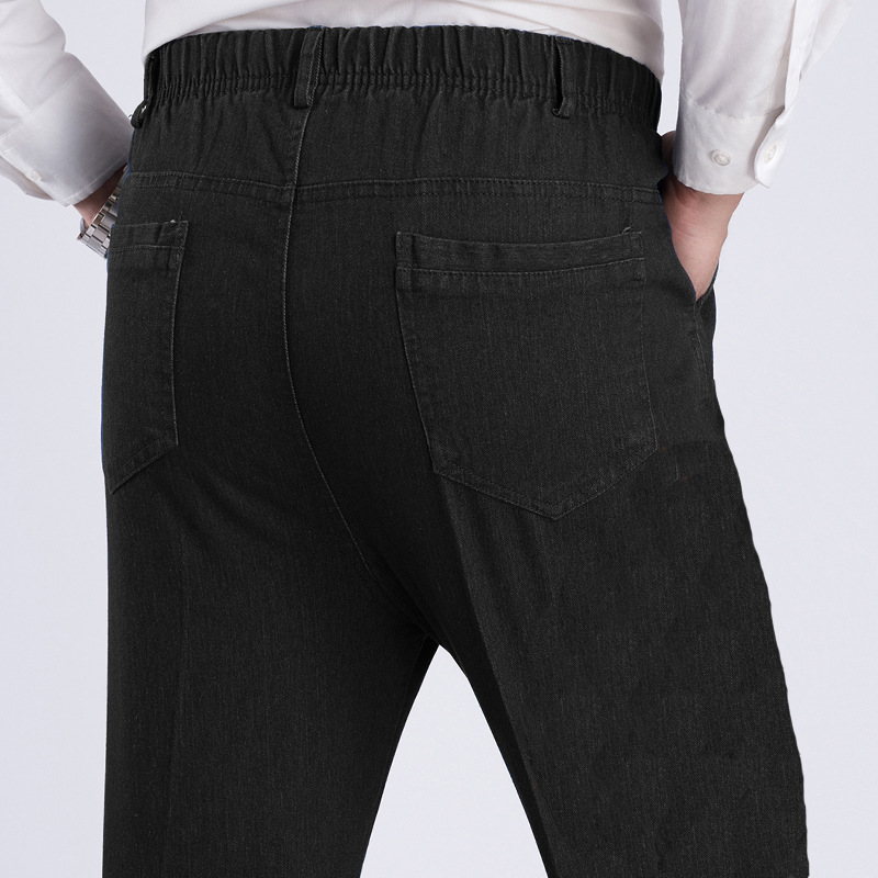 가을 남자의 청바지 남자의 하이 웨이스트 탄성 허리 느슨한 탄성 깊은 가랑이 가을과 겨울 캐주얼 중년 및 노인 바지스토어 가기