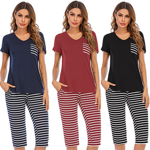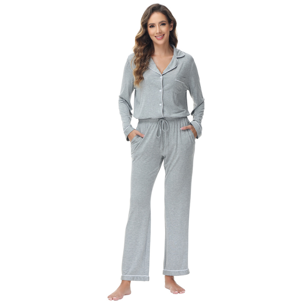국경을 넘는 아마존 EBAY 공급처 2025 홈웨어 잠옷 여성용 봄 여름 모달 긴팔 가디건 투피스 세트스토어 가기