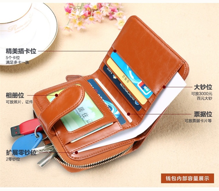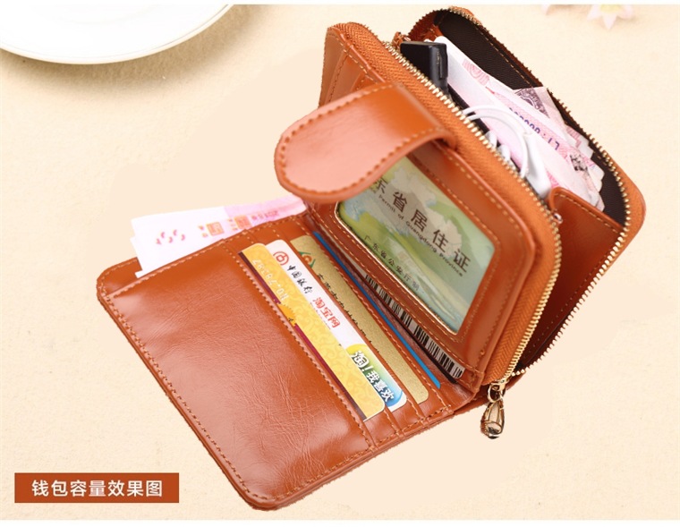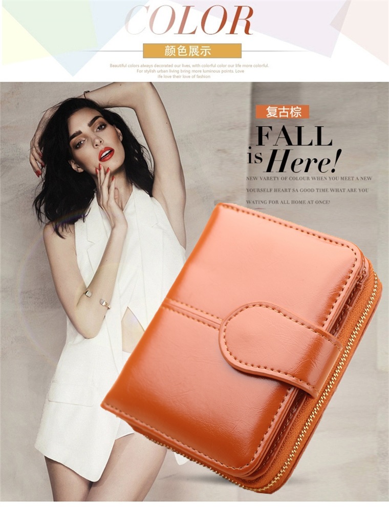 새로운 외국 무역용 여성용 짧은 지갑 오일왁스 가죽 클러치백 카드지갑 대형 지폐지갑 동전지갑 H007스토어 가기