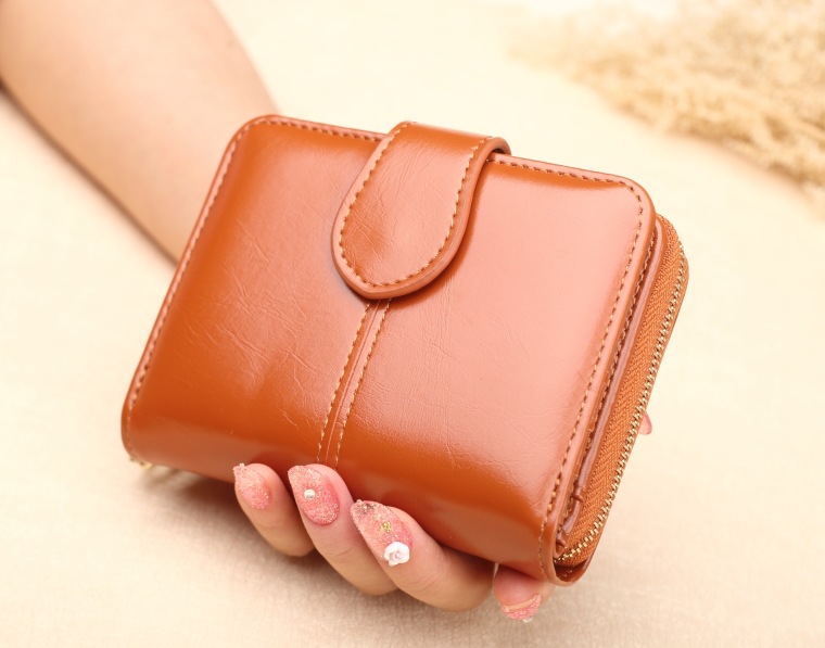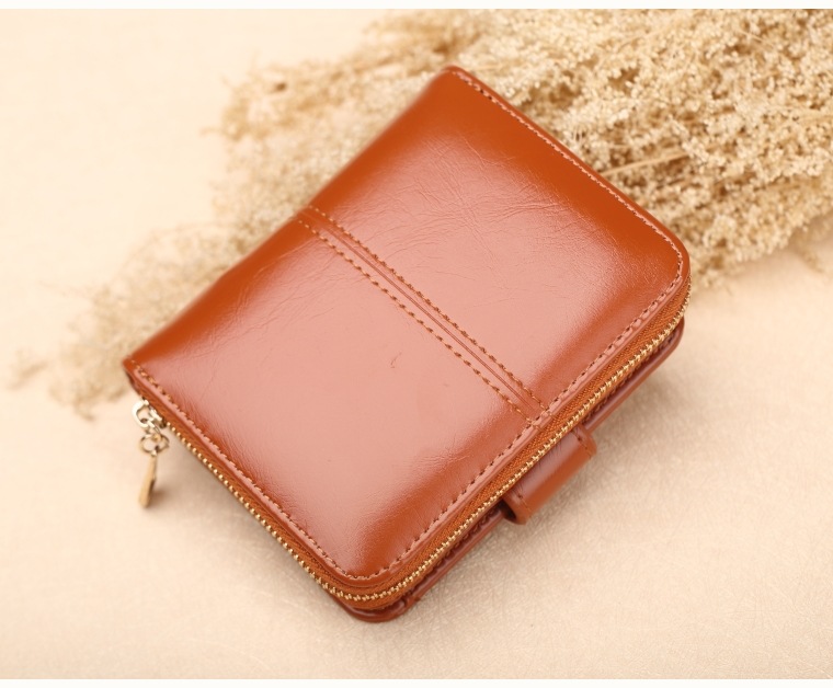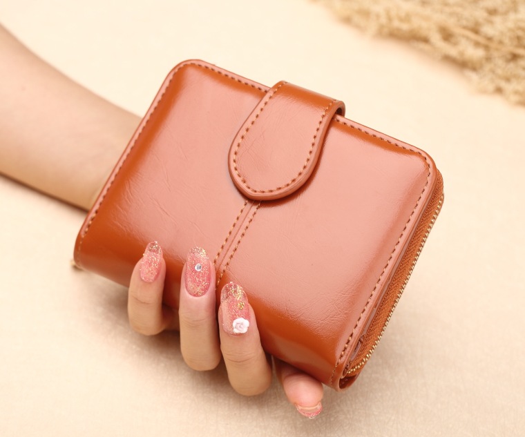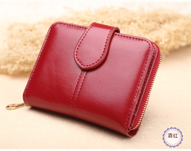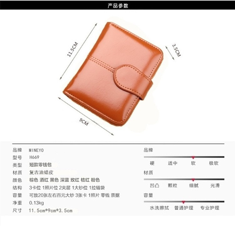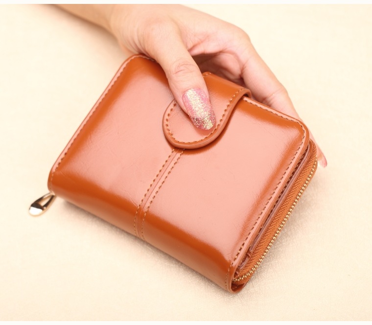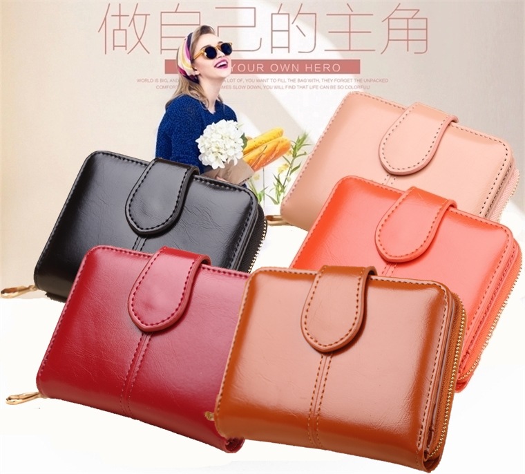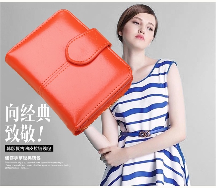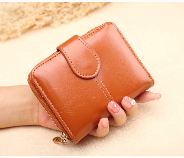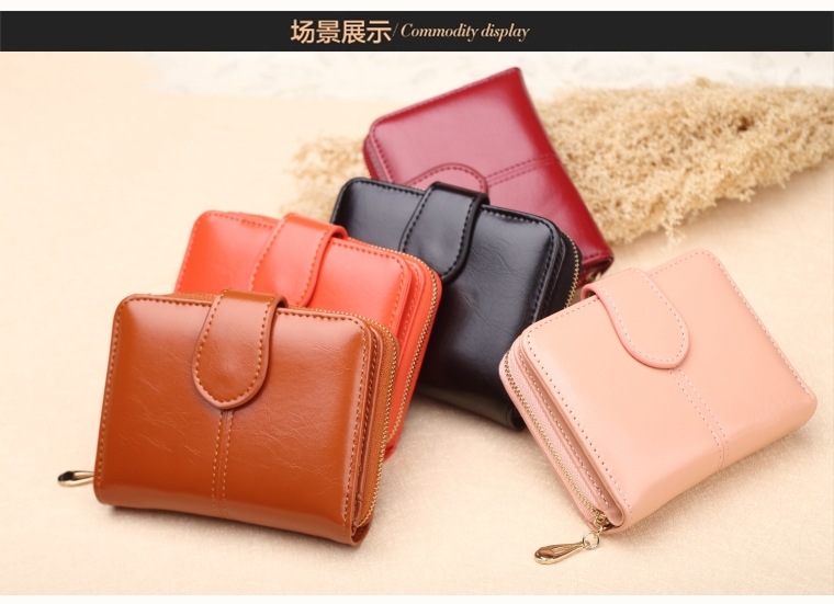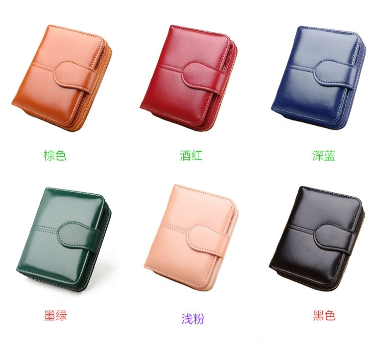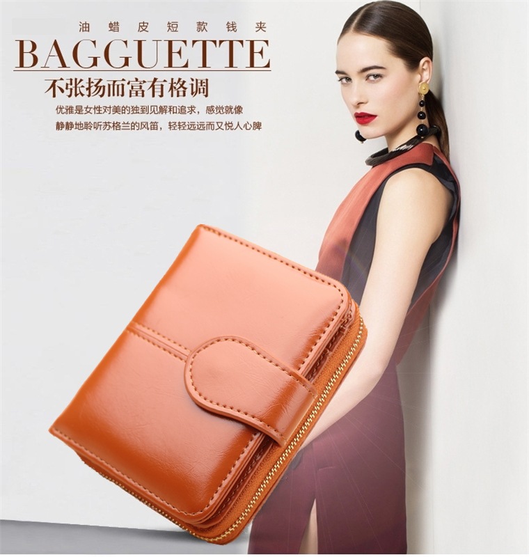 새로운 외국 무역용 여성용 짧은 지갑 오일왁스 가죽 클러치백 카드지갑 대형 지폐지갑 동전지갑 H007
