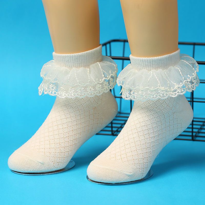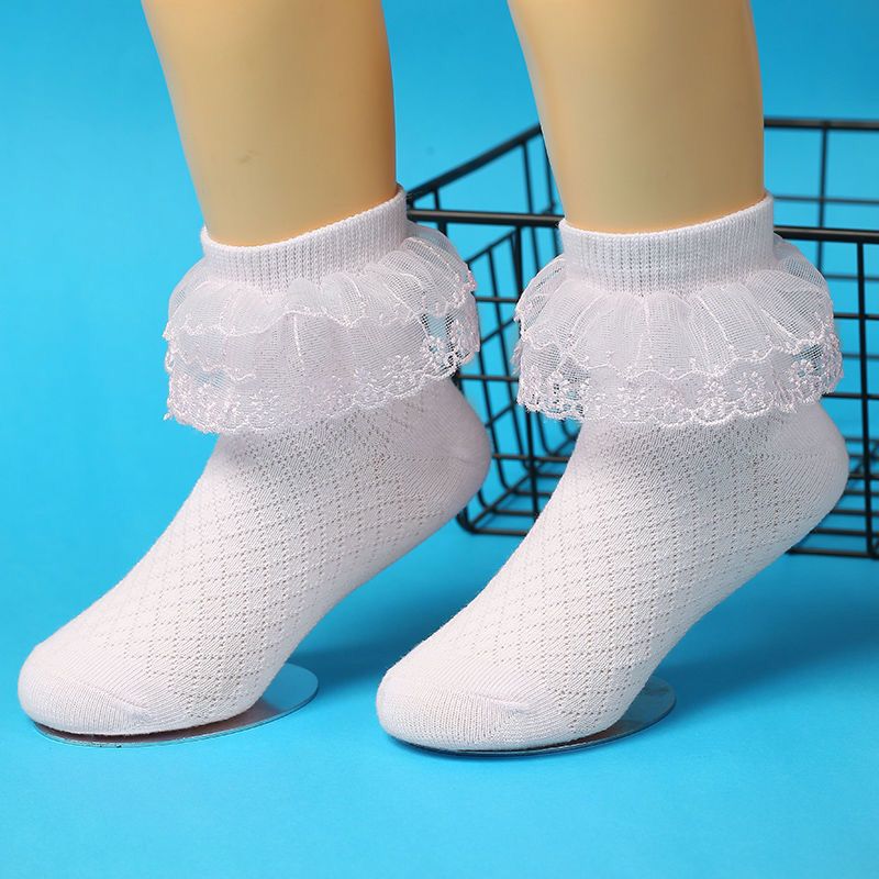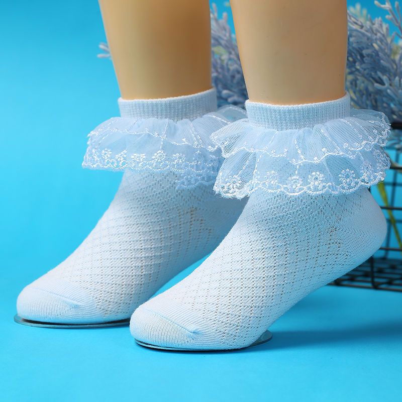봄과 여름 얇은 메쉬 더블 레이어 어린이 레이스 양말 여자 아기 레이스 공주 레이스 댄스 학생 양말