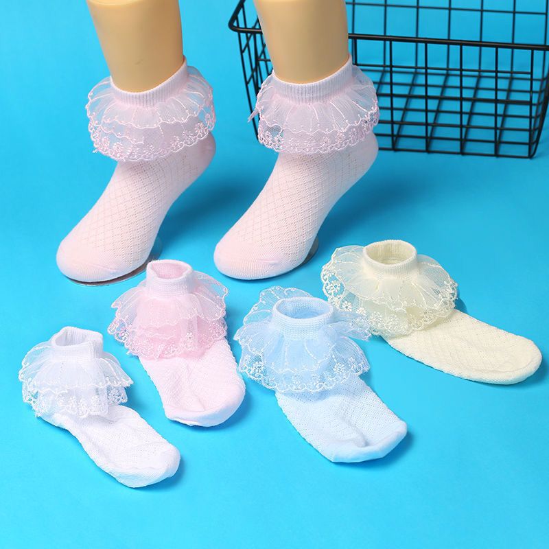 봄과 여름 얇은 메쉬 더블 레이어 어린이 레이스 양말 여자 아기 레이스 공주 레이스 댄스 학생 양말스토어 가기