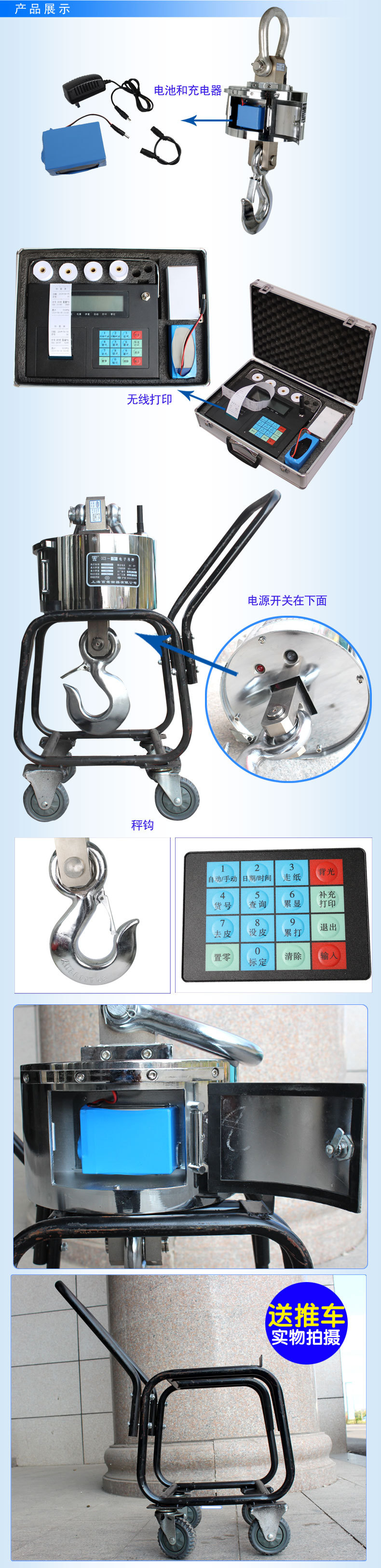 百鹰无线电子吊秤OCS-9800B系列无线吊钩秤钢壳带打印电子吊钩秤