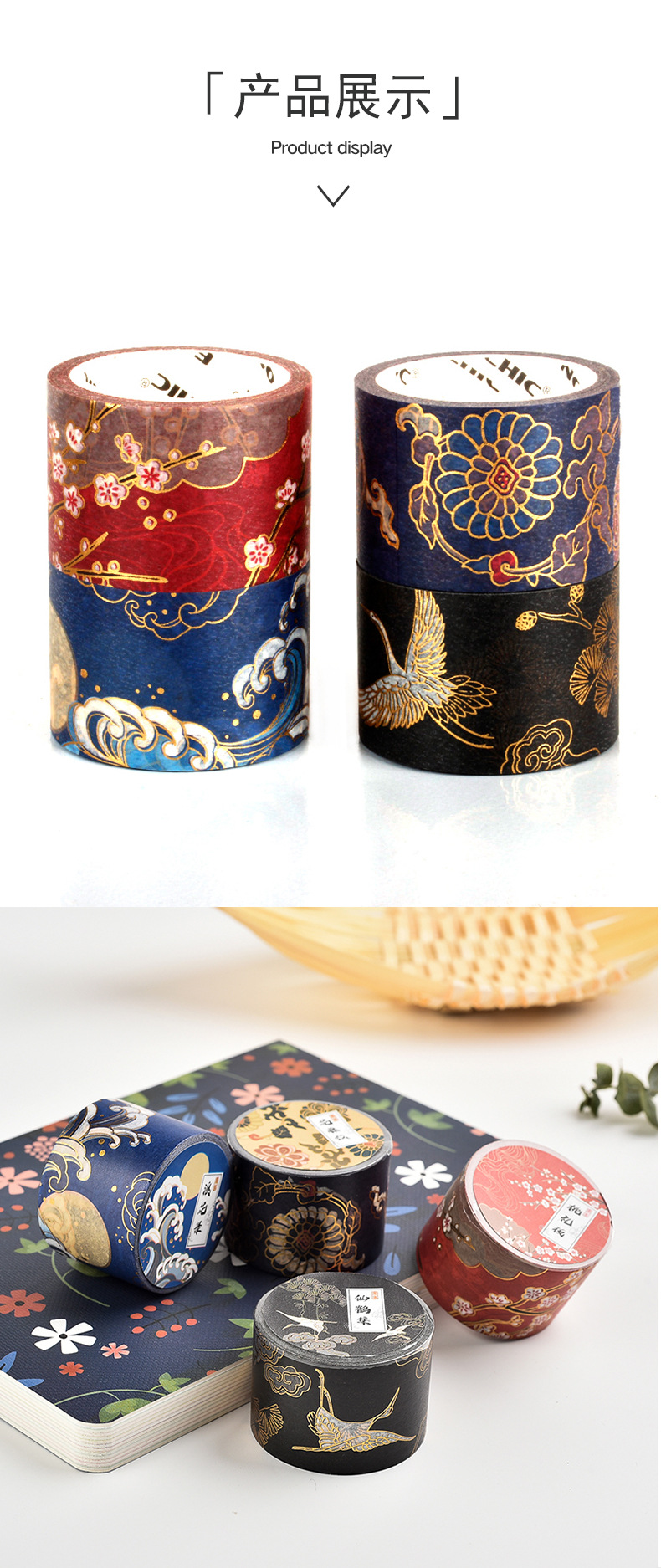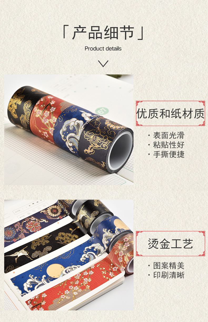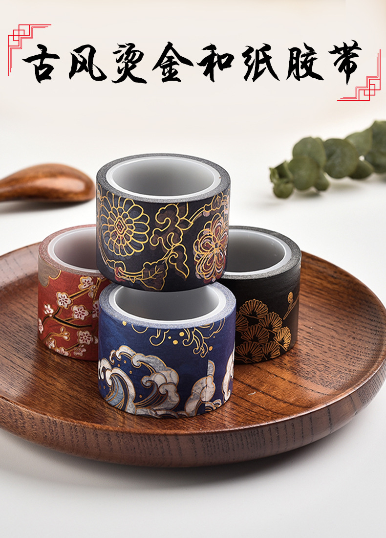 레트로 브론 징 핸드 레저 테이프 자금성 편지지 고대 스타일 조경 테이프 와이드 립스틱 필름 전체 롤 Washi 테이프