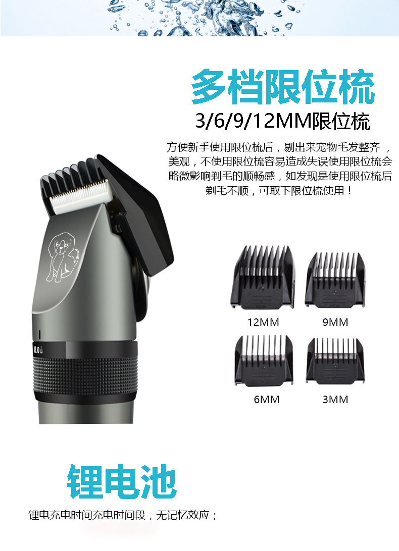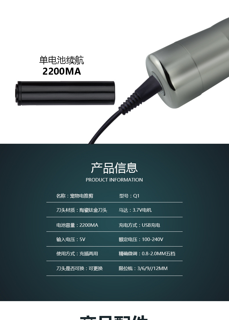 产品配件:主机,锂电池,USB线,限位梳x4,清洁毛刷,润滑油,说明书