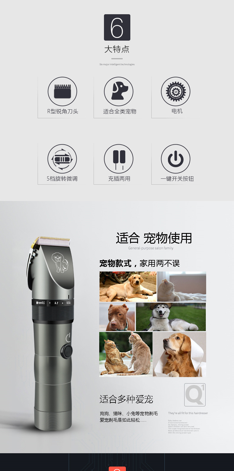 3.本产品刀头锋利、耐用、耐热、静音;