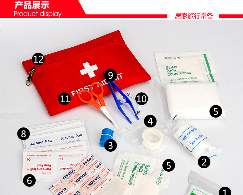 차량용 응급 키트 구급약 키트 12종 세트 가정용 응급 용품 휴대용 소형 응급 키트 휴대용 응급 처치스토어 가기