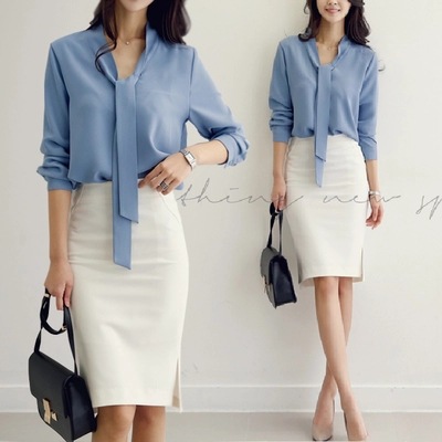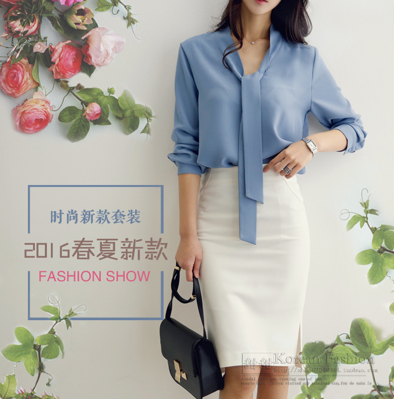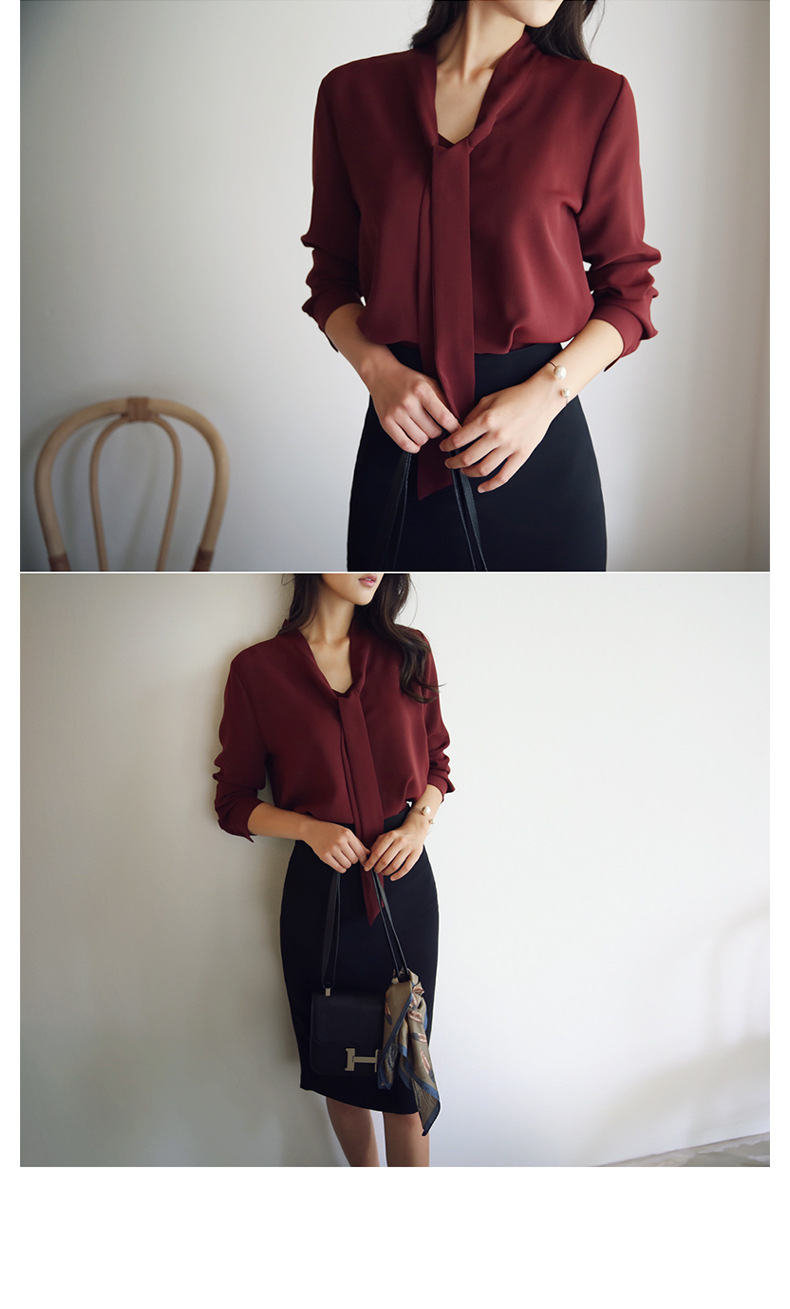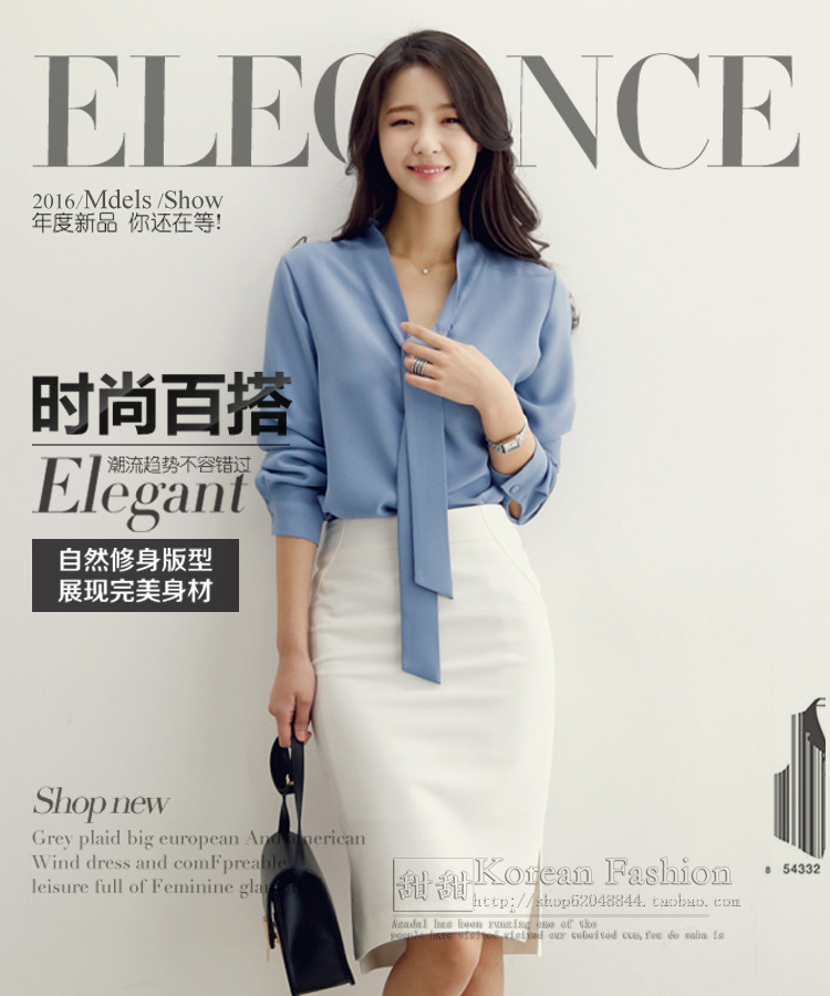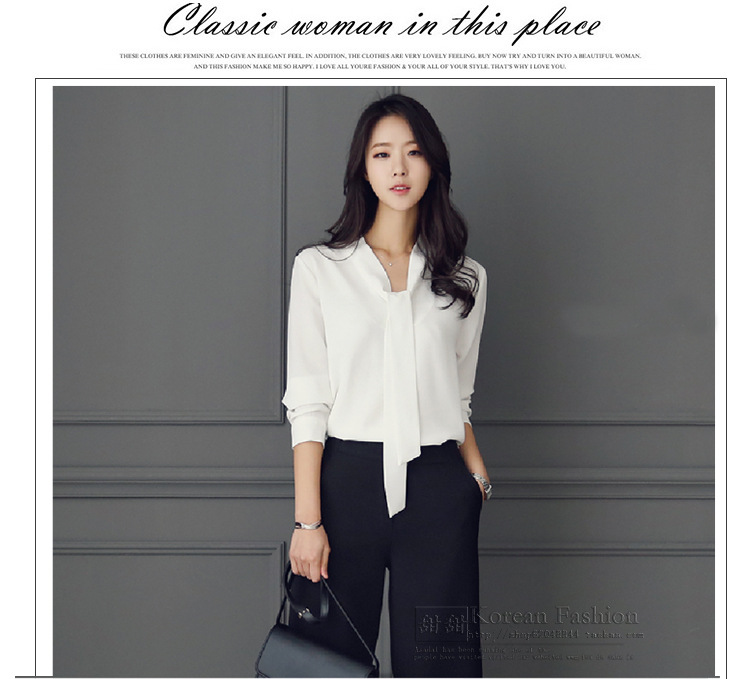 2019 봄 새로운 긴 소매 나비 리본 셔츠 트렌디 한 한국 스타일 셔츠 쉬폰 셔츠 여성 탑
