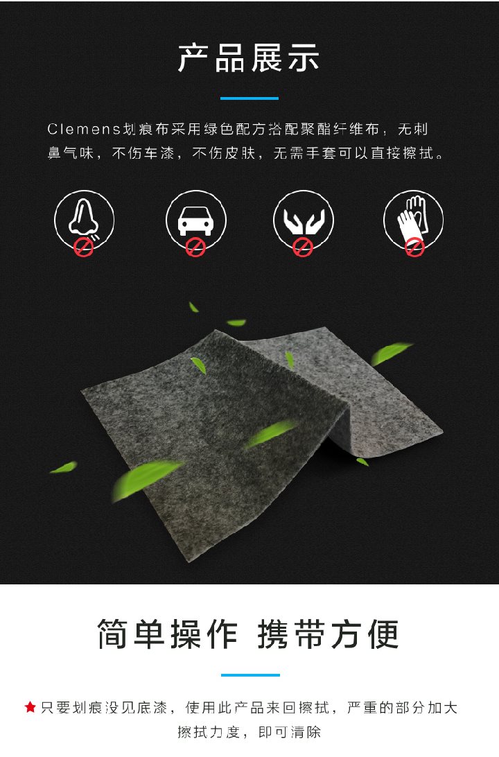 1,修复布主要针对漆面轻微痕处理【如指甲痕,浅层擦撞痕,沙粒磨痕等】较深的划痕【不伤漆】用力多擦几分钟也可以有一定的淡化效果!