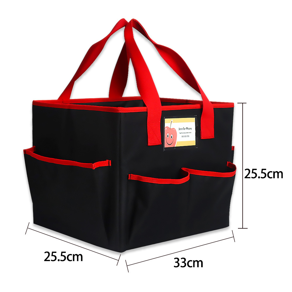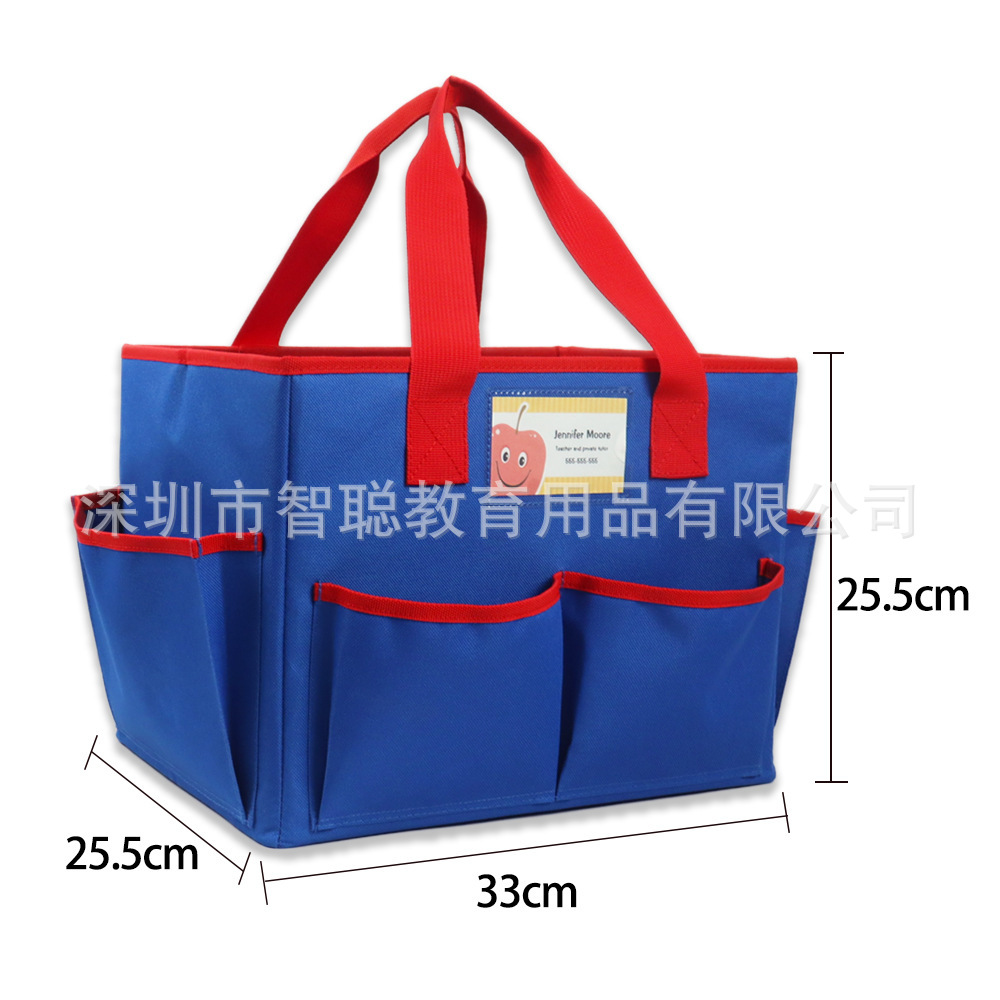 这个教师手提袋可以放各种东西,从马克笔、铅笔到剪刀、胶水……再加上一个超大的内部空间,足够放书、文件夹、记事本等等。有坚固提手可携带去任何地方,并保持基本的教学用品组织整洁和方便。平时放在办公桌上当文具收纳盒用,不用时折叠存放。家庭也好使用,可存放尿片等等......