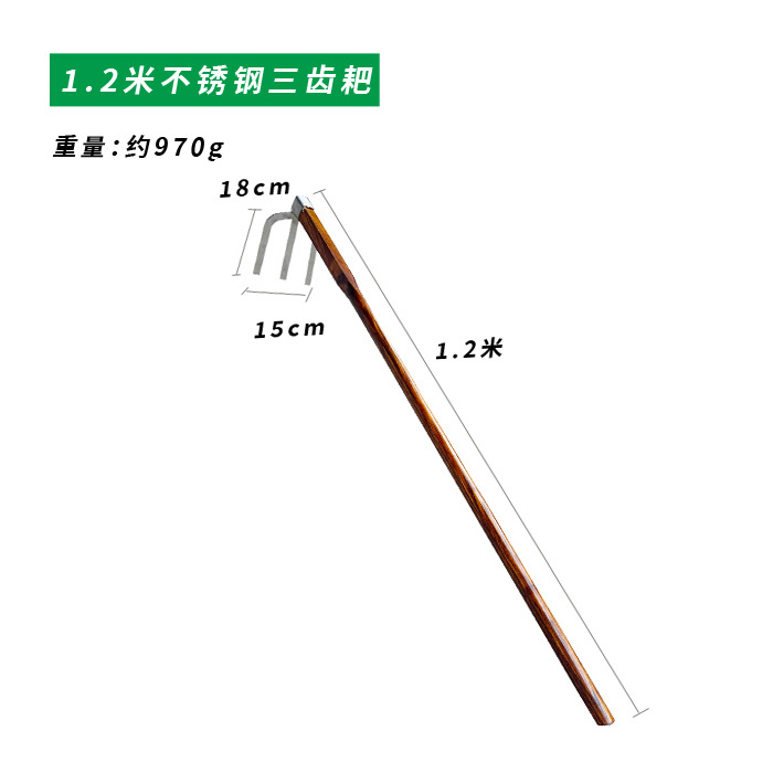 • 1.2 m 스테인레스 스틸 나무 손잡이가있는 3 이빨 갈퀴