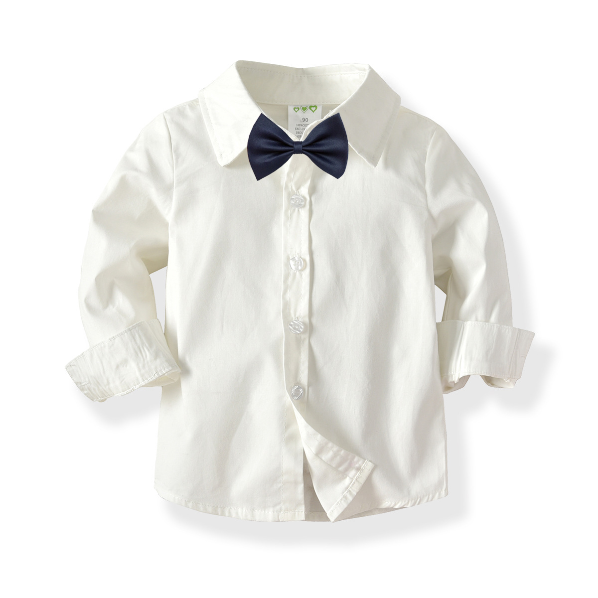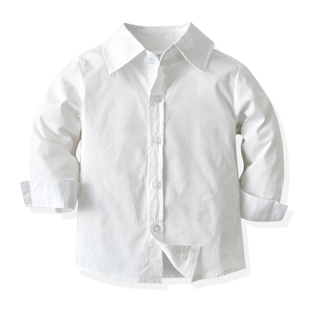 2024 소년 흰색 셔츠 어린이 아기 순수 면화 긴팔 셔츠 중형 및 대형 어린이 봄, 가을 바닥 셔츠