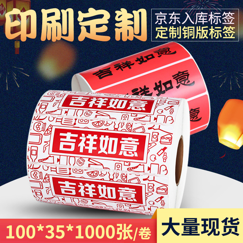 징동 창고 100*35*1000 행운 세트 접착 스티커 바코드 라벨 용지 재고 제거하지 마십시오