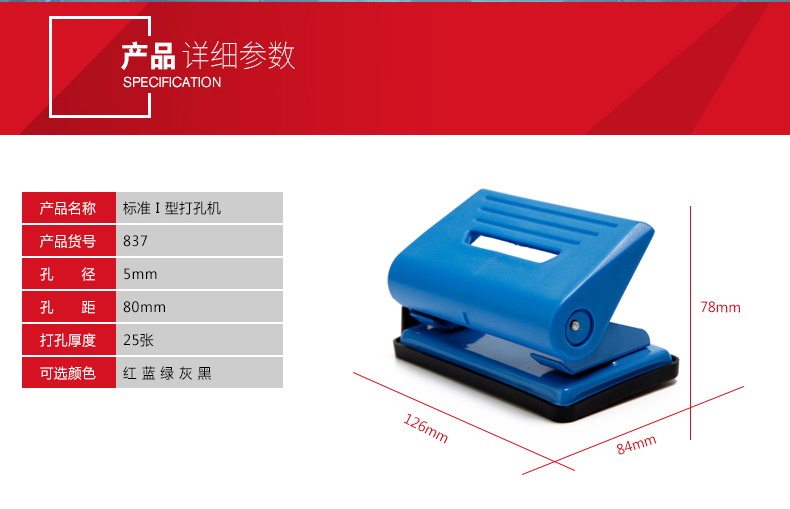 益而高纸张学生试卷打孔机 文件装订40张厚层圆形双孔活页打孔器