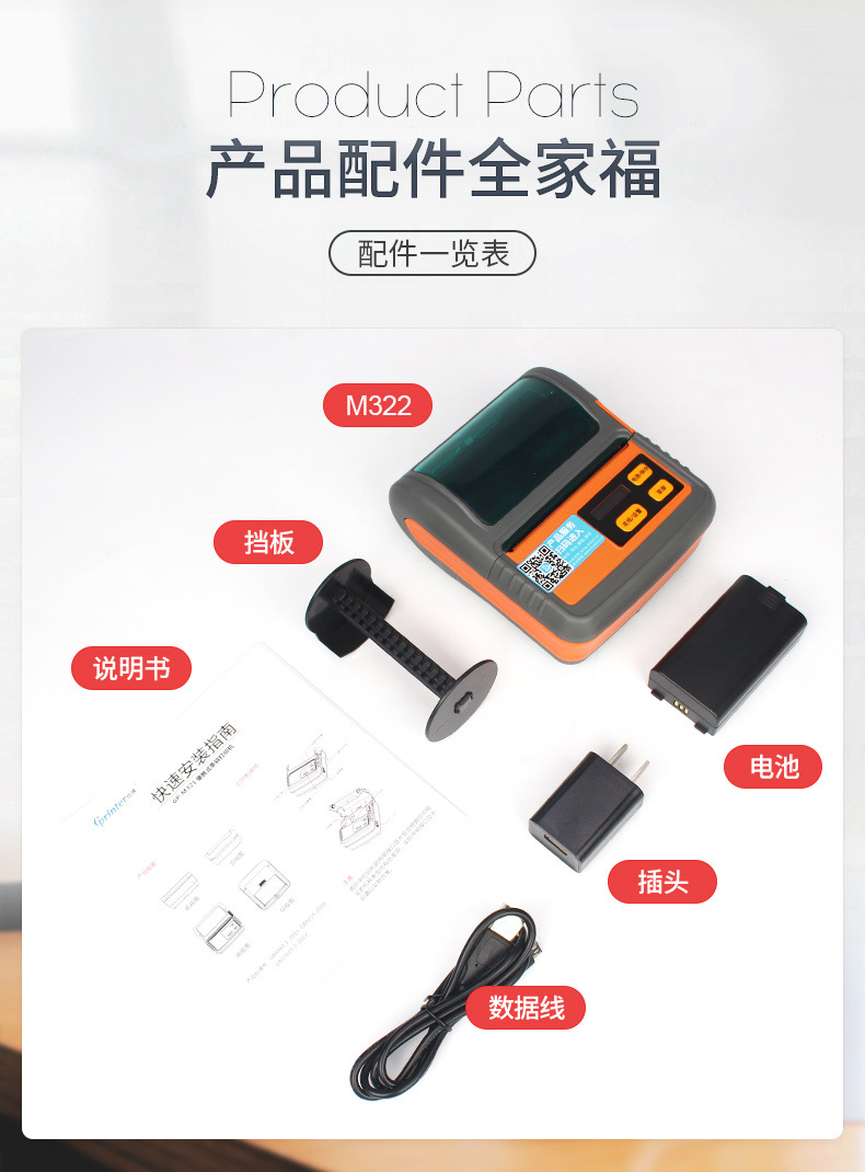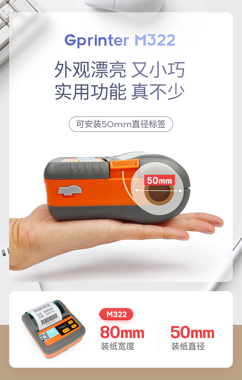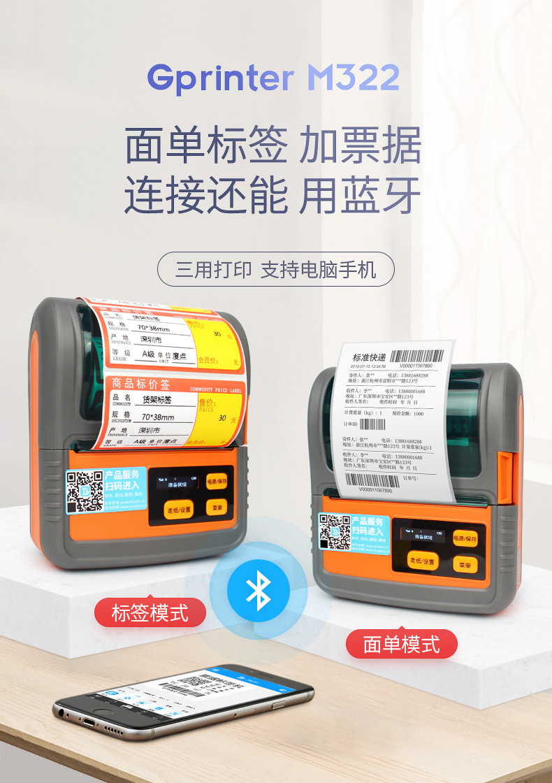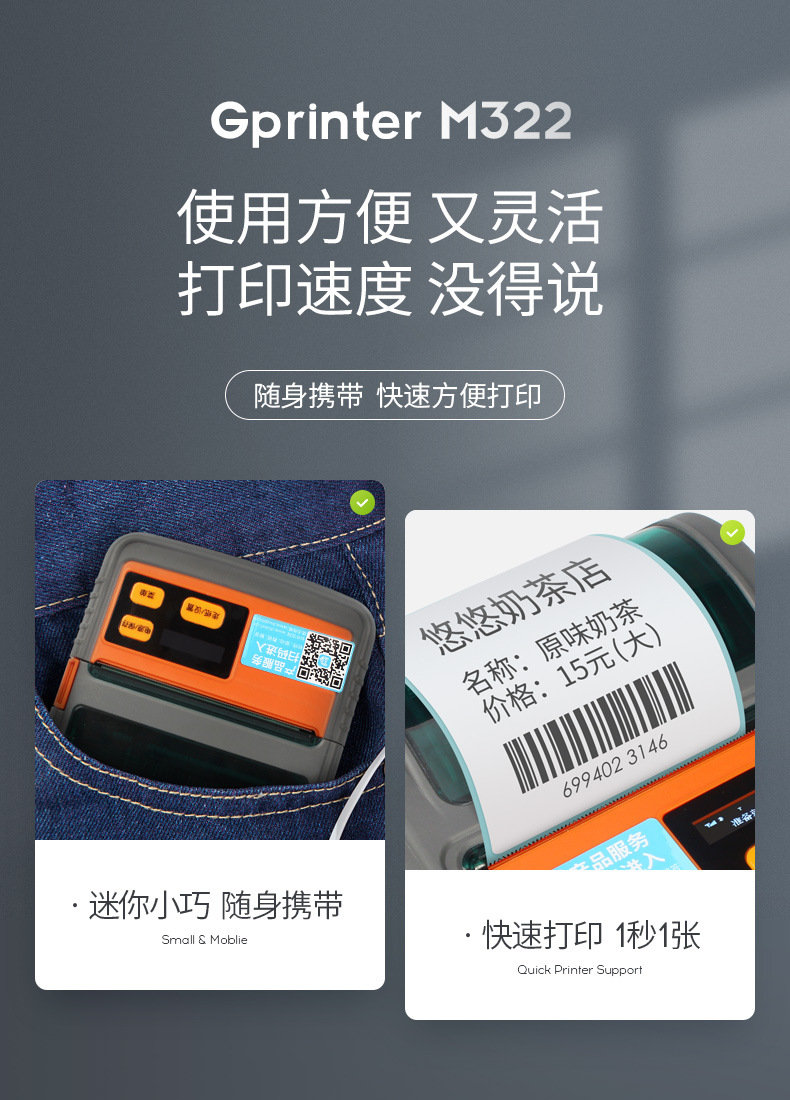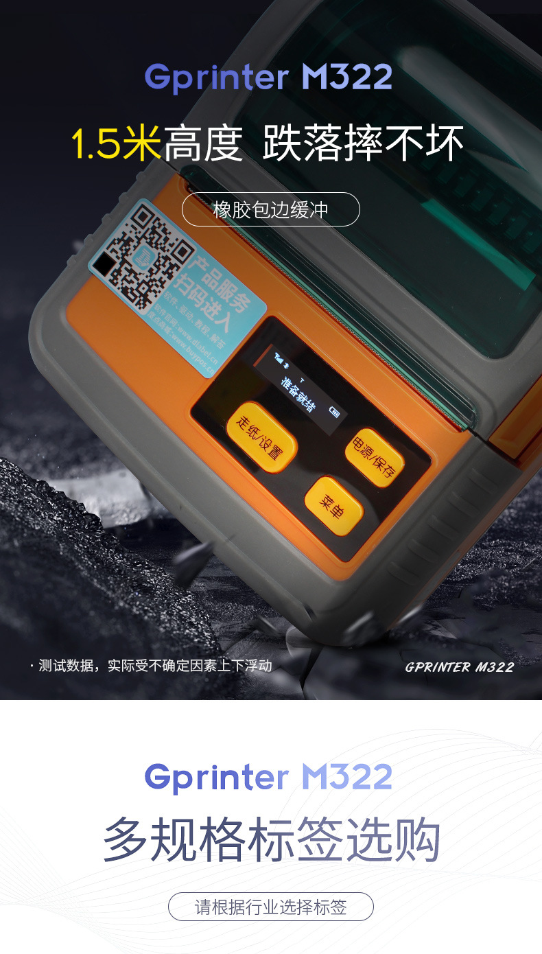 Jiabo M322 라벨 프린터 휴대용 핸드헬드 페이스 싱글 라벨 바코드 블루투스 열 휴대용 프린터스토어 가기