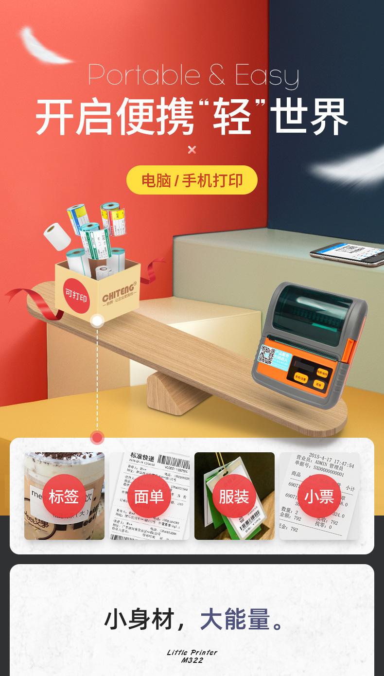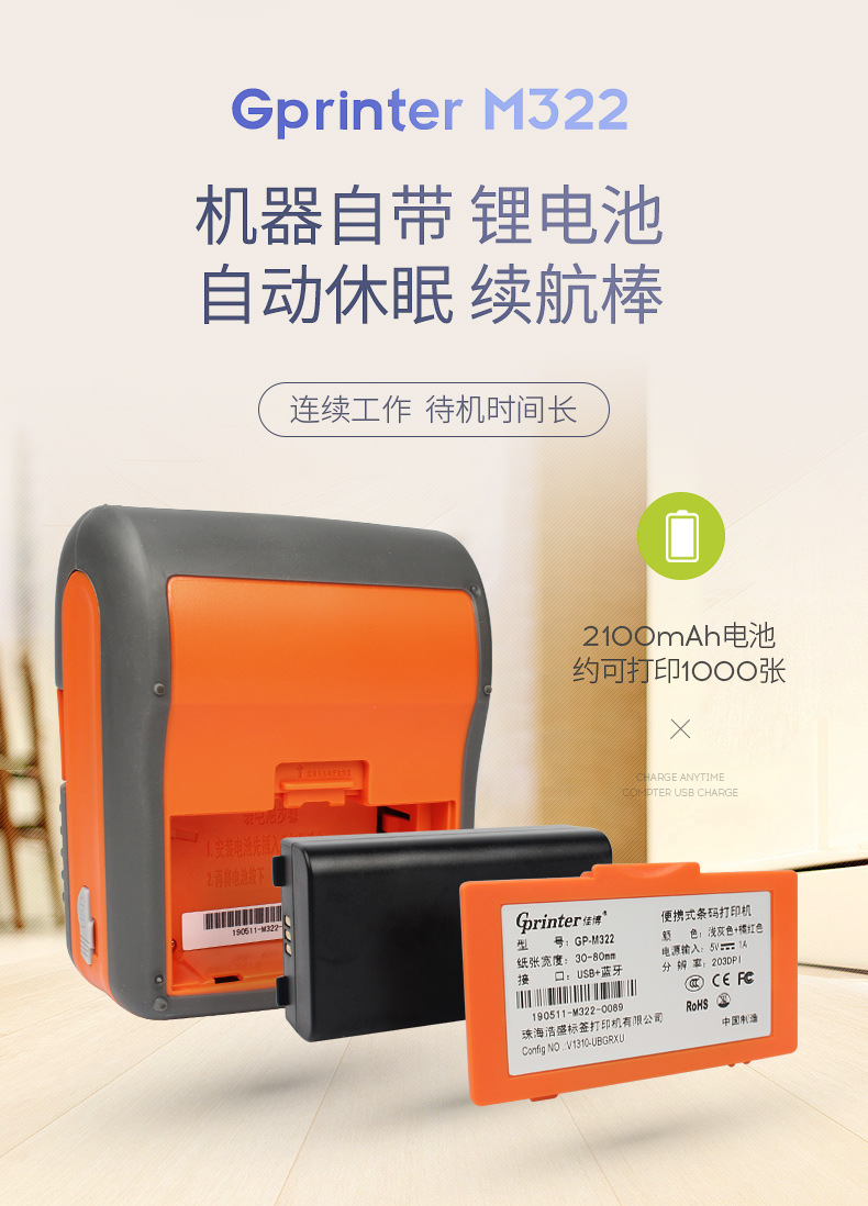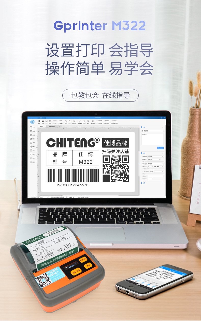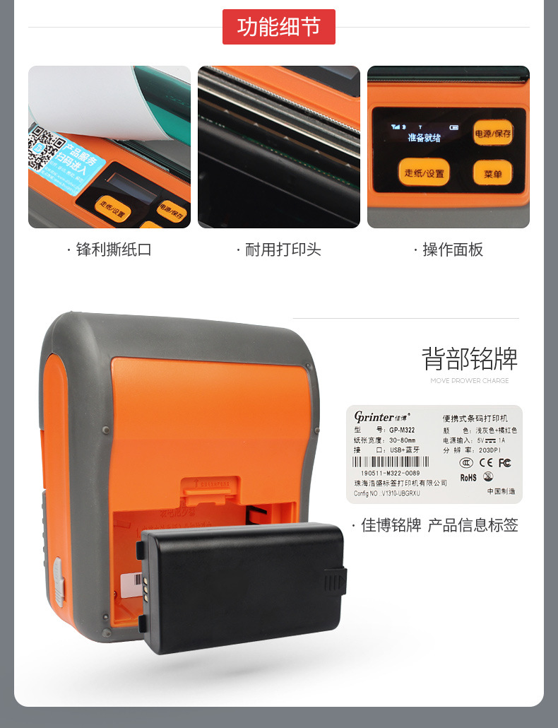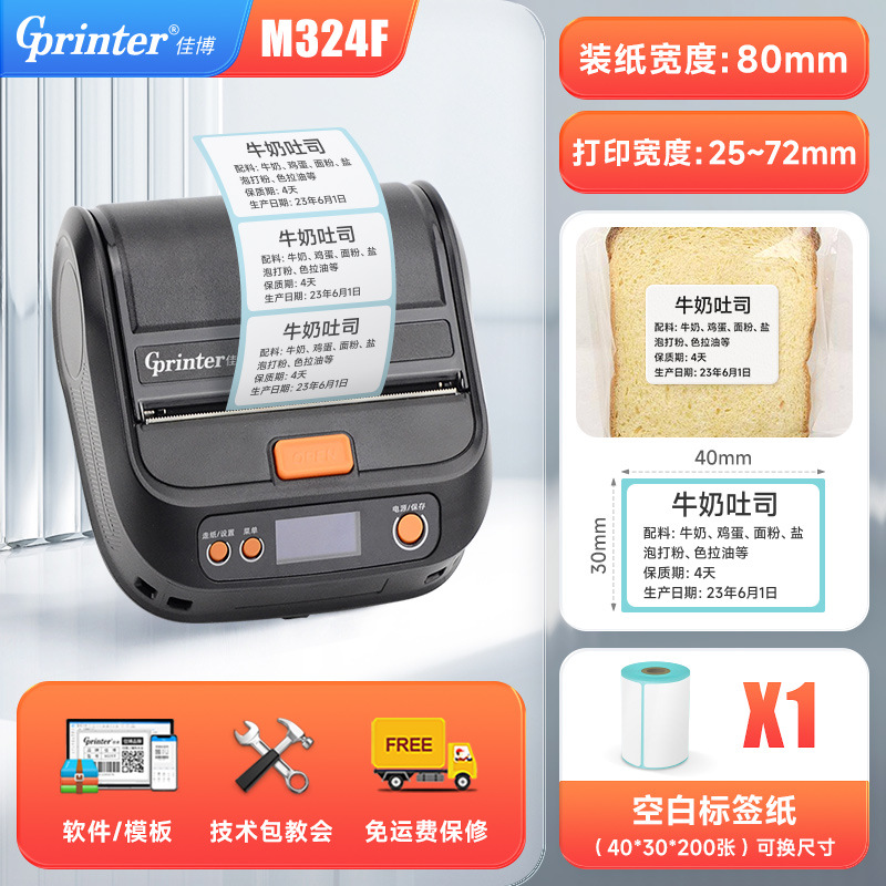 Jiabo M322 라벨 프린터 휴대용 핸드헬드 페이스 싱글 라벨 바코드 블루투스 열 휴대용 프린터스토어 가기