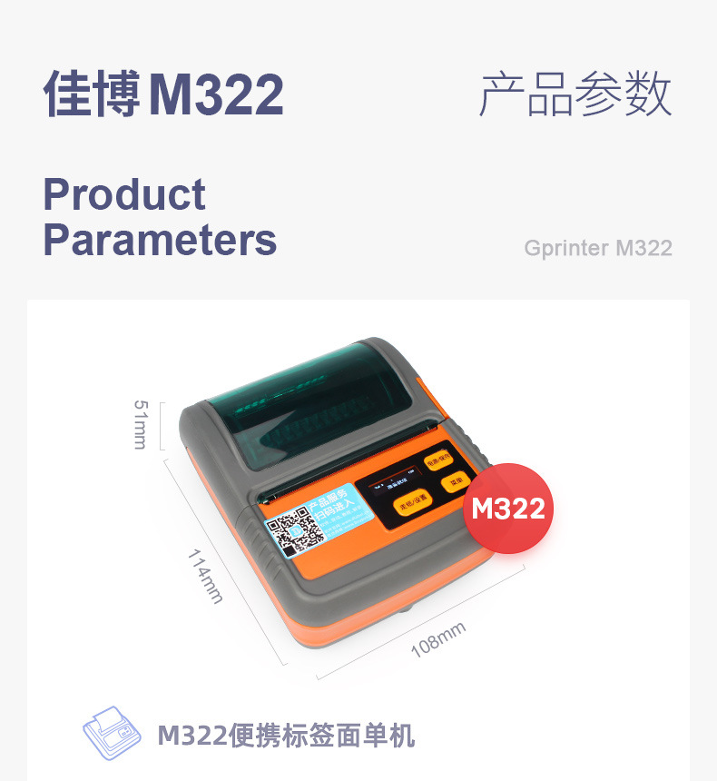 Jiabo M322 라벨 프린터 휴대용 핸드헬드 페이스 싱글 라벨 바코드 블루투스 열 휴대용 프린터
