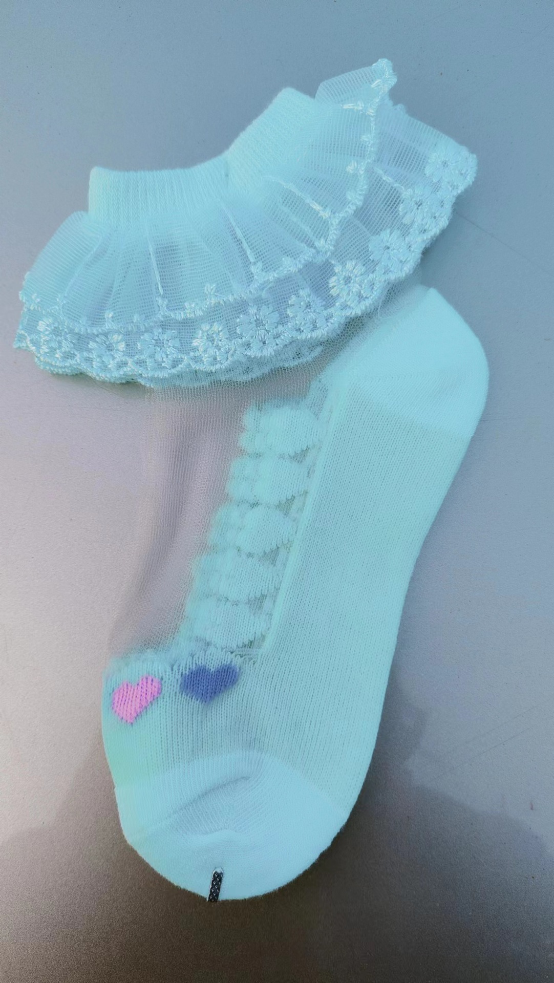 여자 레이스 양말 어린이 크리스탈 울트라 씬 공주 댄스 더블 레이어 스트라이프 아이스 실크 투명 뼈없는 원활한 통기성 플랫