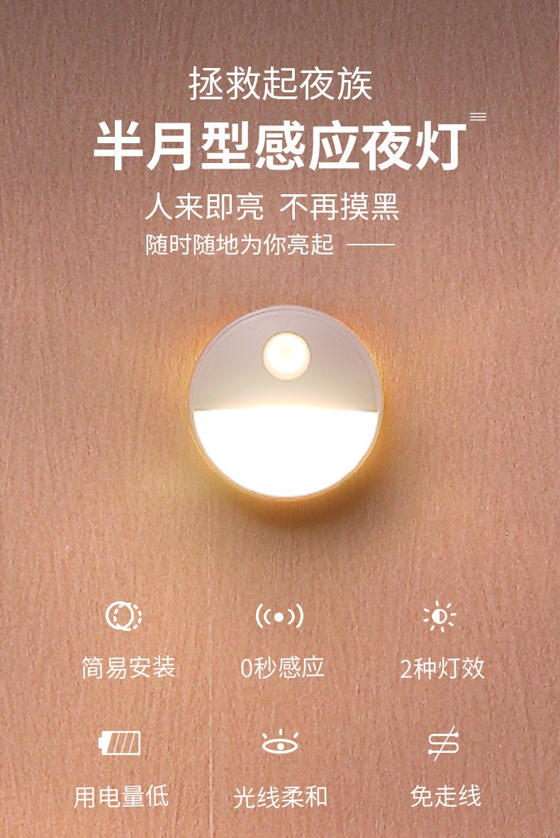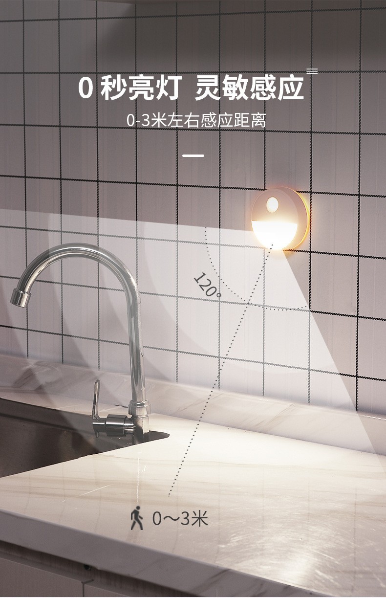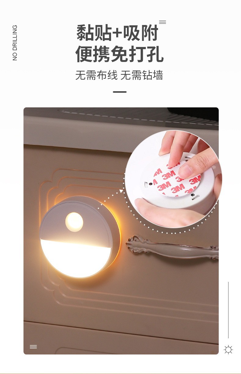 新奇特LED圆形橱柜灯人体感应灯礼品感应夜灯Motion Sensor Light