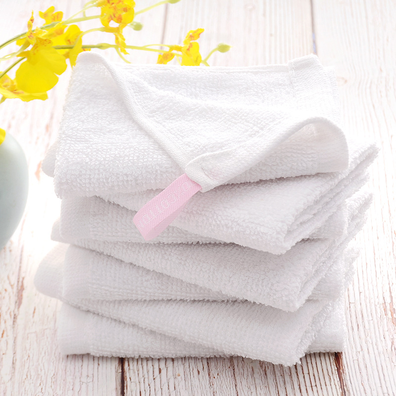 흰색 작은 사각 타월 유치원 어린이 작은 수건 후크 자수 로고 인쇄 코드 소독 4 사각 타월