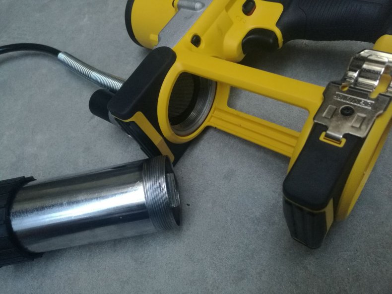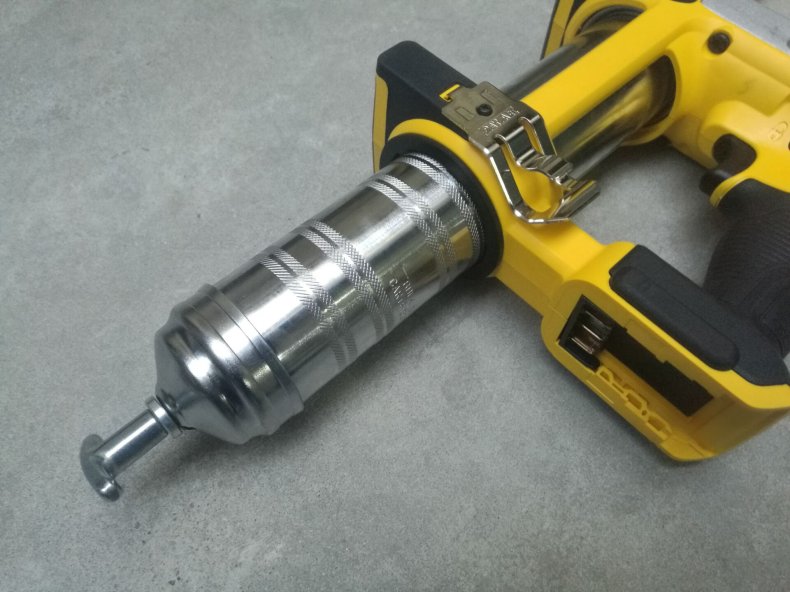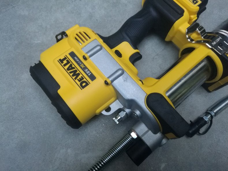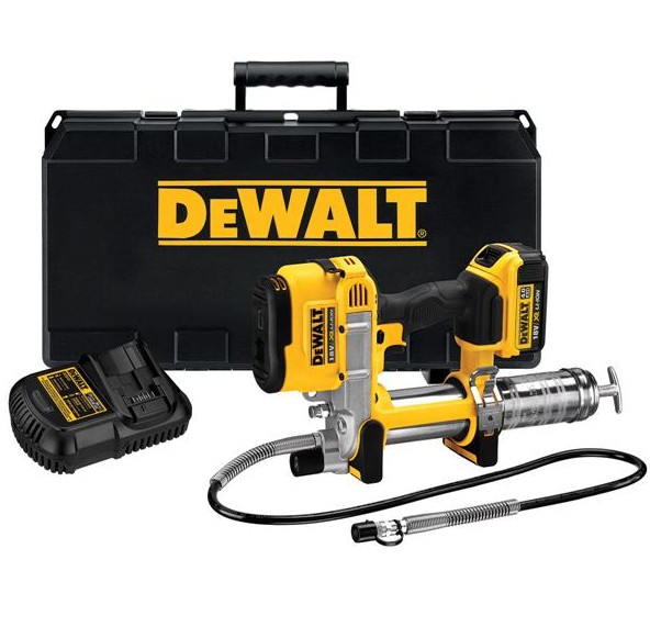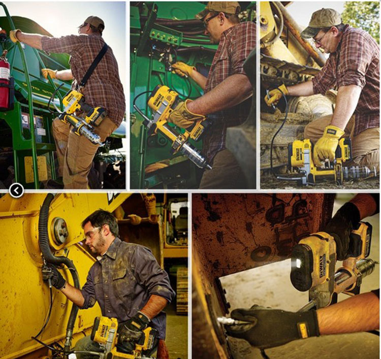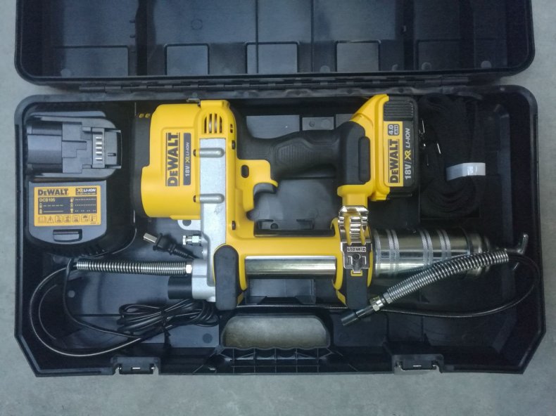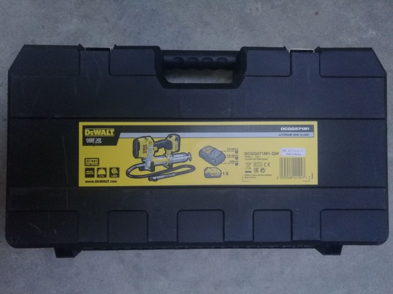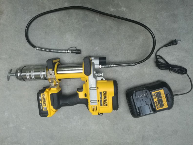 DCGG571锂电黄油枪18V,配置:DCGG单机一台,电池DCB182一个,充电器DCB105一个,胶箱尺寸:600*340*110,毛重:6.7KG