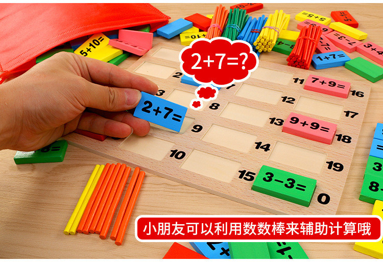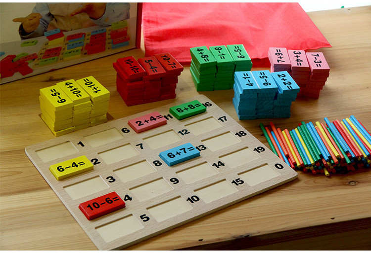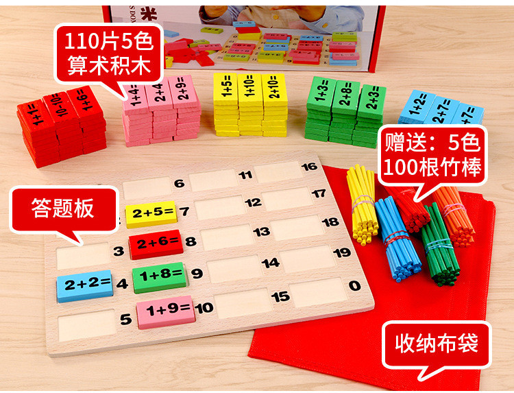 110片数学多米诺新款应用热转印技术加印的数字模,不容易掉漆,更加完美。此款数学运算板是新进的一款幼教数学基础玩具也可做多米诺骨牌,