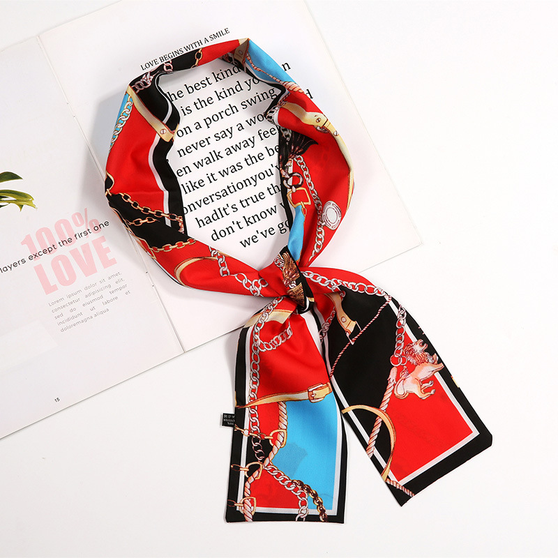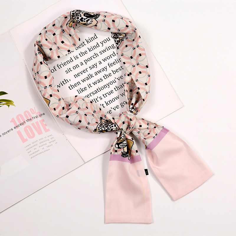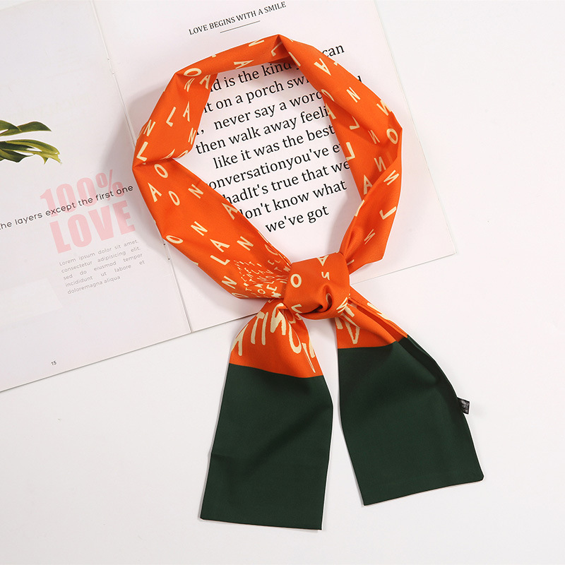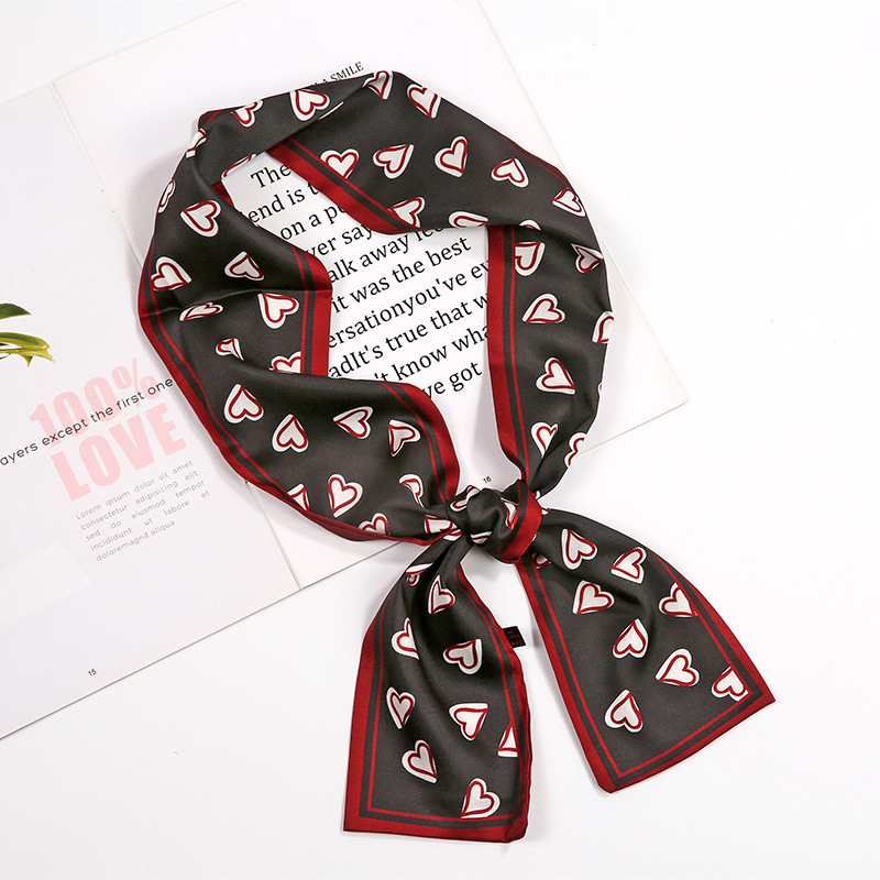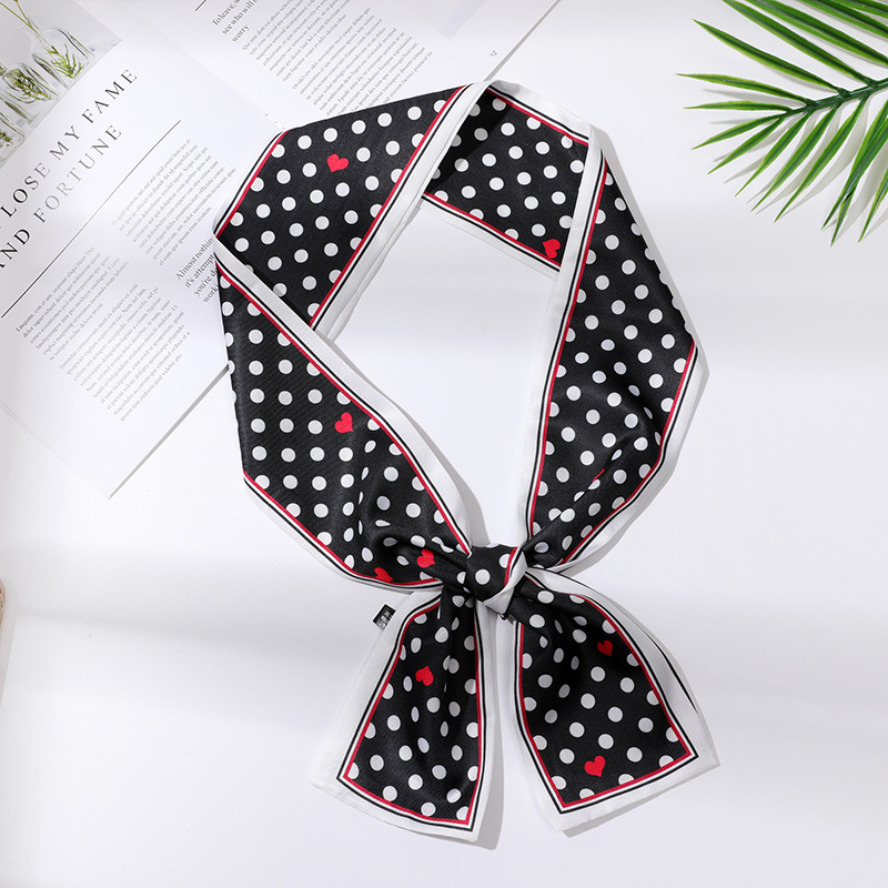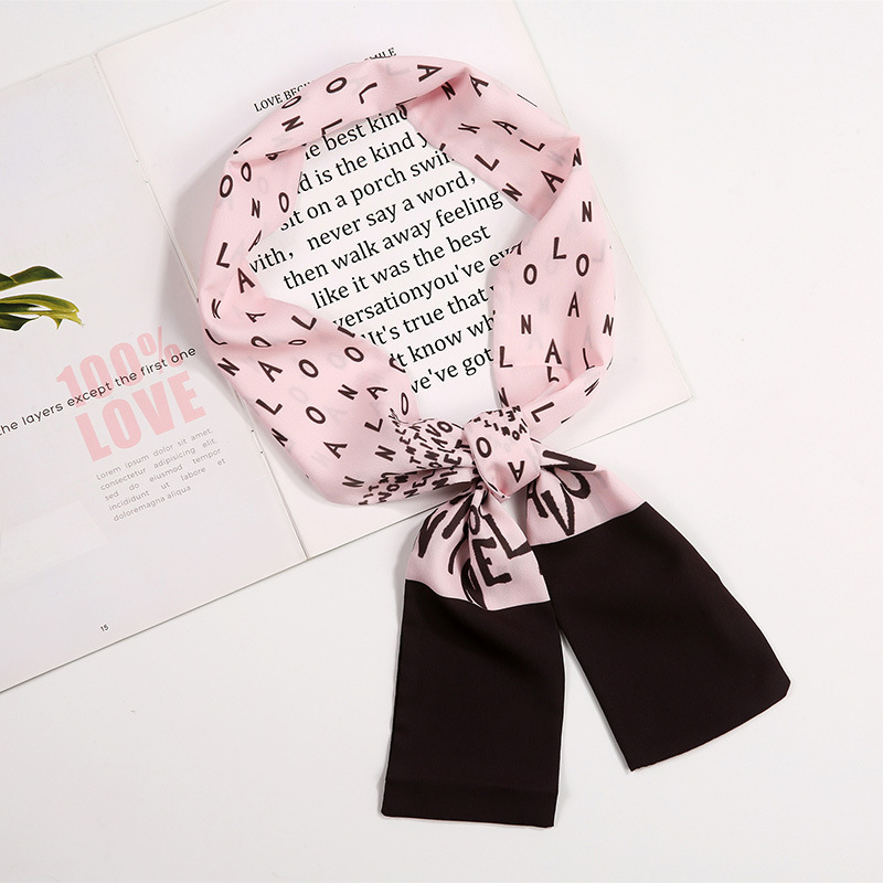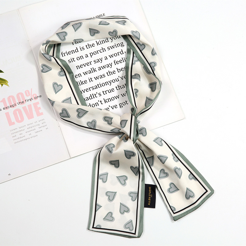 새로운 사랑 스카프 여성용 쉬폰 인쇄 더블 레이어 실크 스카프 헤어 벨트 넥타이 헤어 백 넥타이 모든 매치 장식 실크 스카프