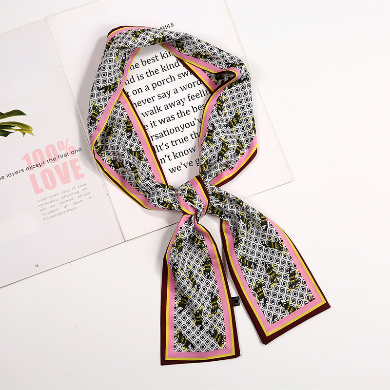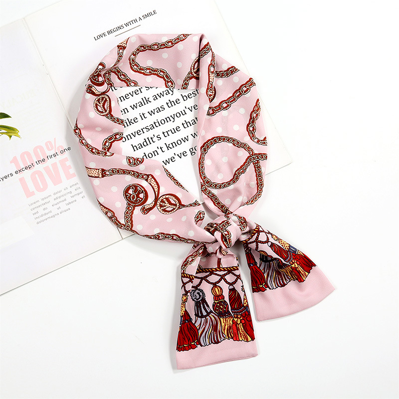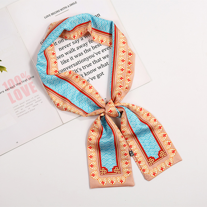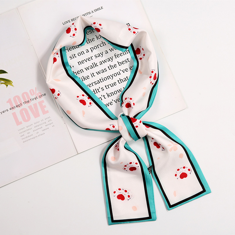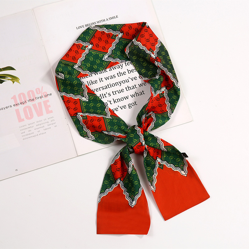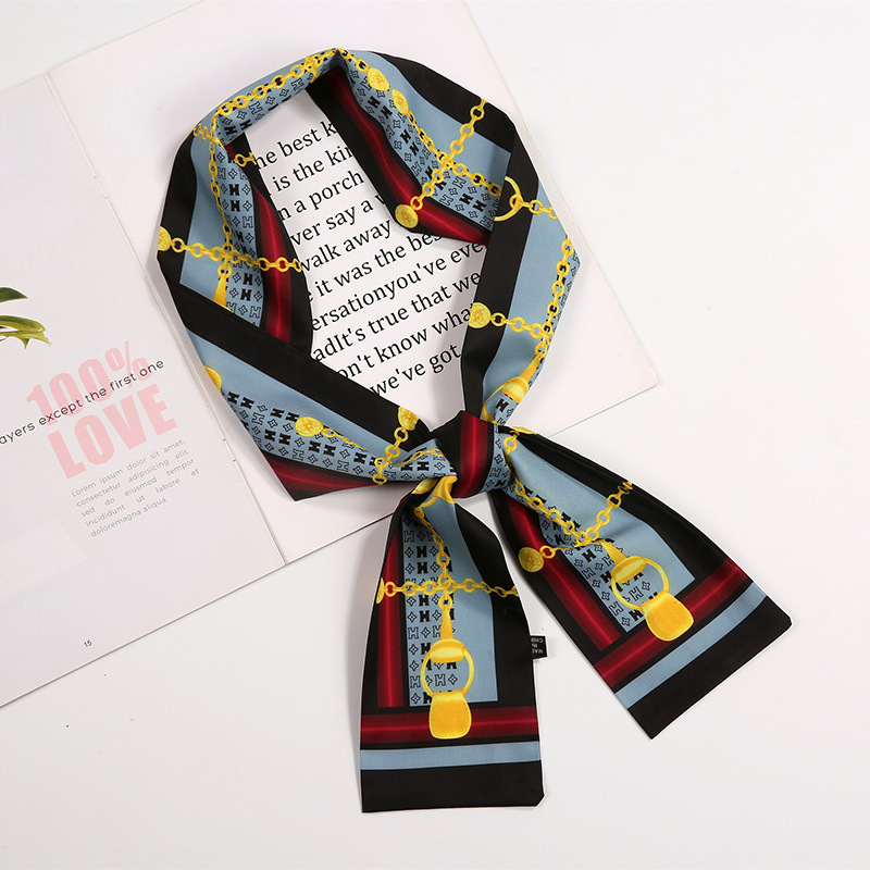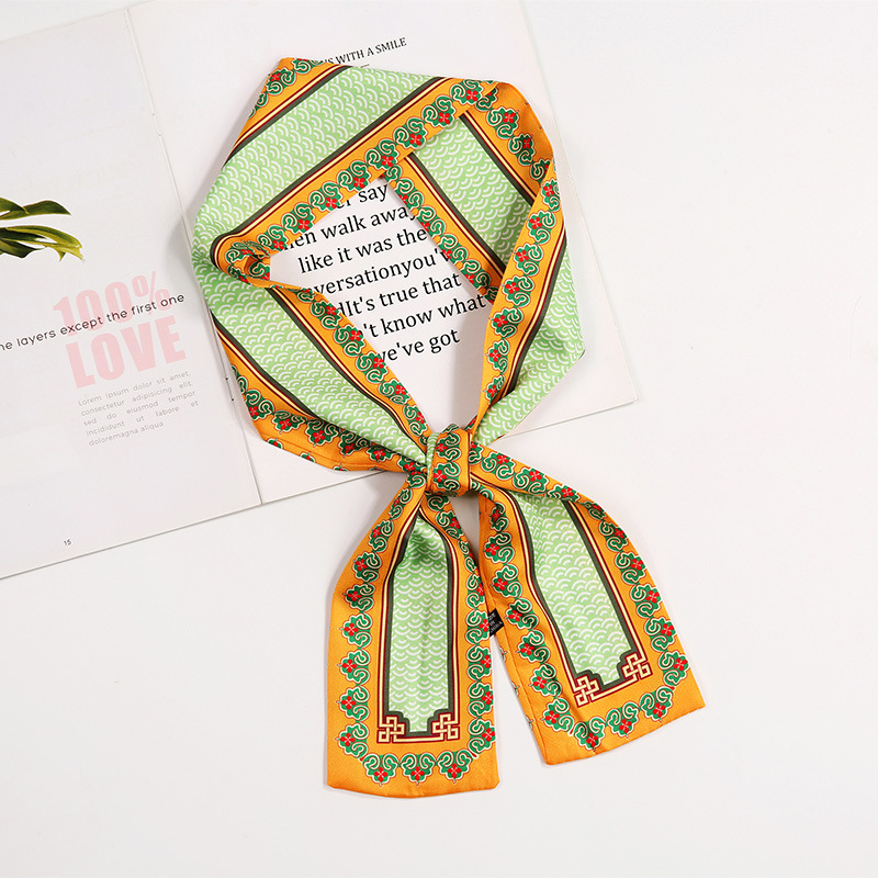 새로운 사랑 스카프 여성용 쉬폰 인쇄 더블 레이어 실크 스카프 헤어 벨트 넥타이 헤어 백 넥타이 모든 매치 장식 실크 스카프