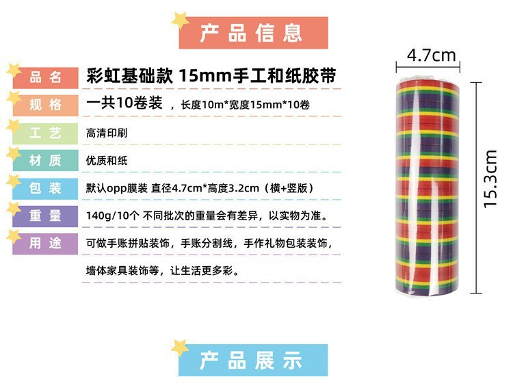일본식 무지개 와시 테이프 DIY 장식 수첩 사진첩 테이프 가로줄 세로줄 수공예 창작