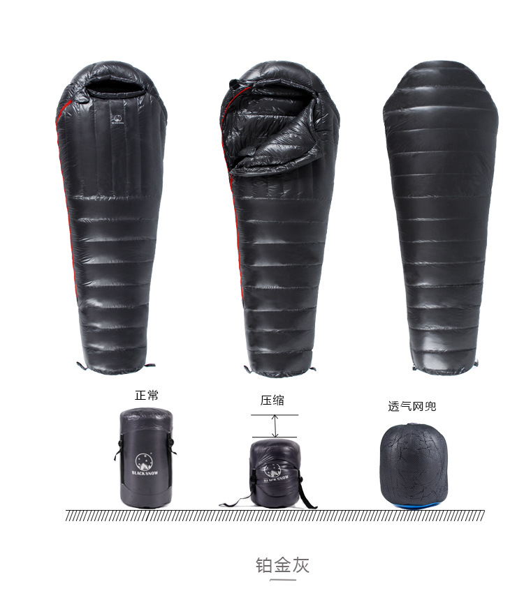 블랙 스노우 메이커 공급 야외 캠핑 성인 미라 라이트 및 따뜻한 추운 지역 거위 다운 침낭스토어 가기