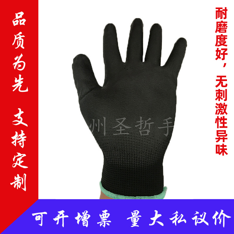 PU 검정색 코팅 손바닥 장갑 정전기 방지 코팅 손바닥 코팅 PU 손바닥 보호 코팅 나일론 13핀 미끄럼 방지 전자스토어 가기
