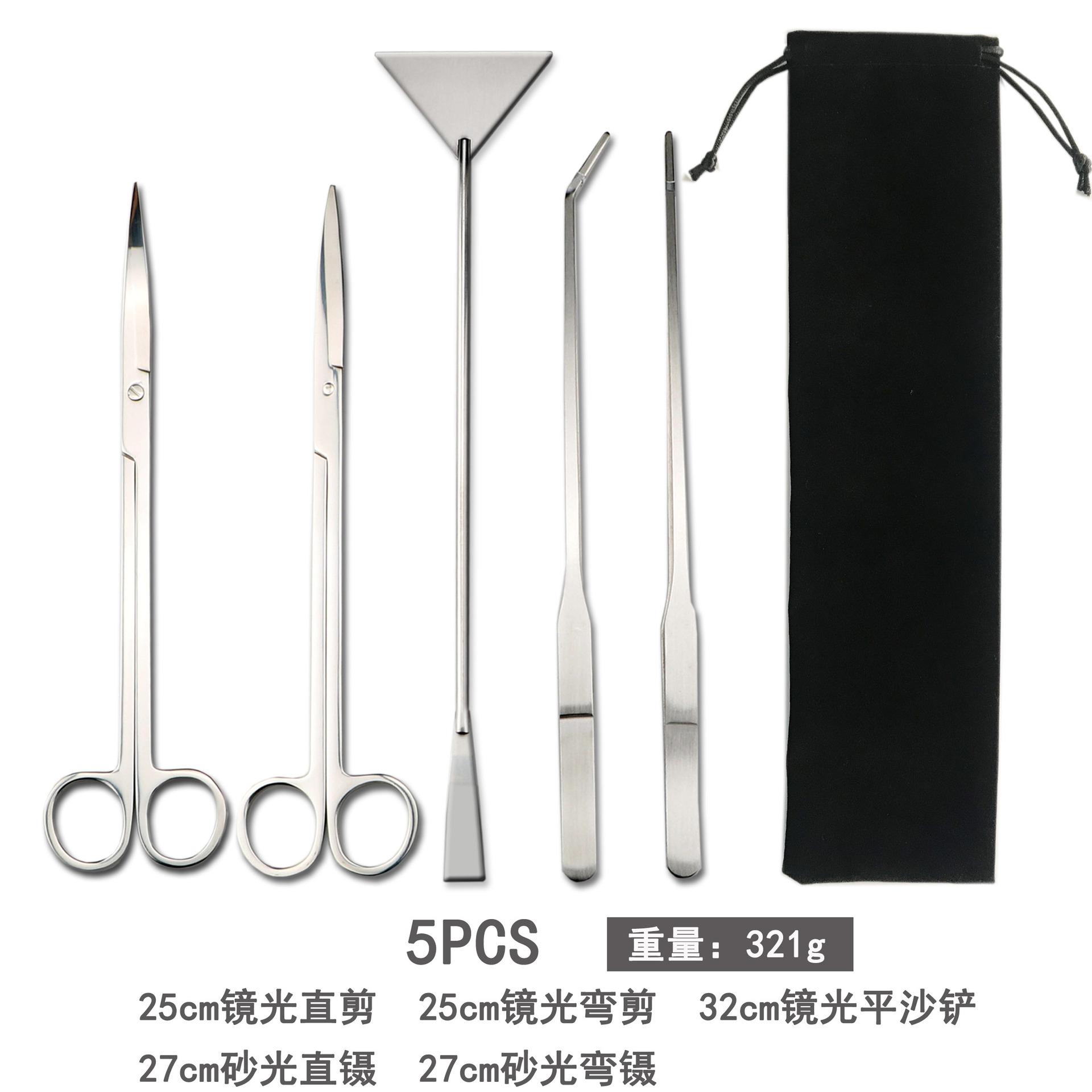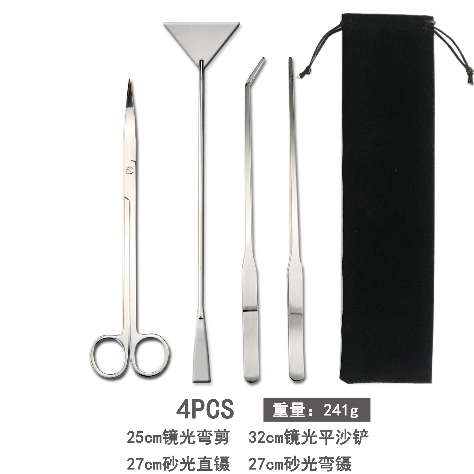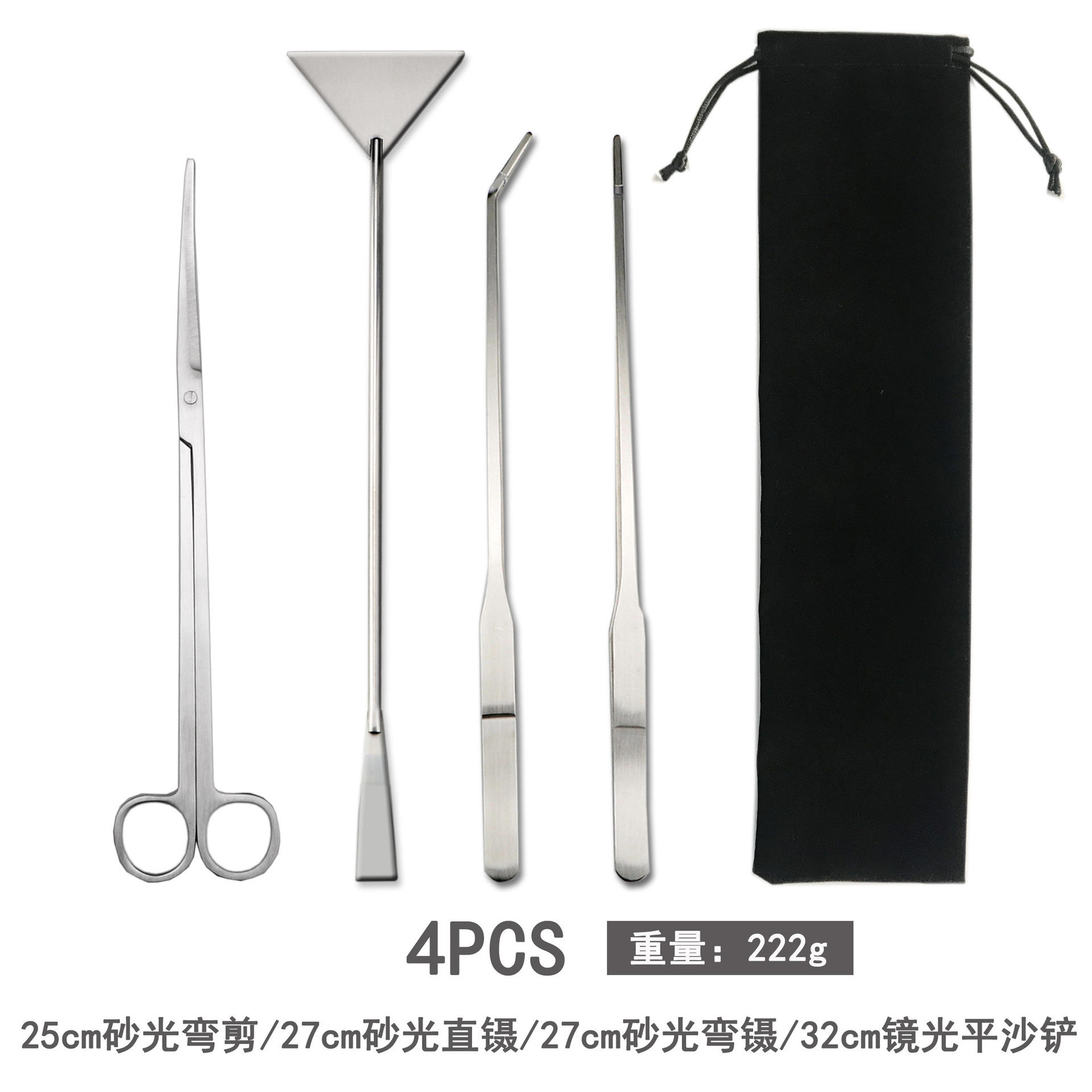 천 벨벳 가방 물 잔디 가위 네 조각 물고기 탱크 크로스 국경 조경 도구 세트 스테인레스 스틸 물 잔디 가위 클립