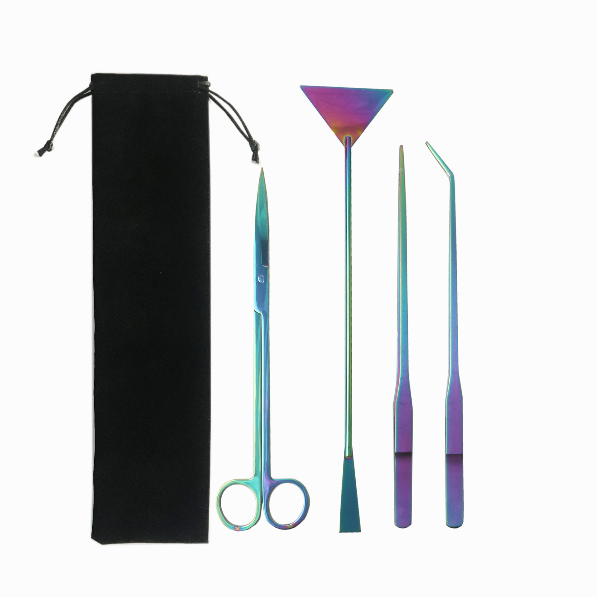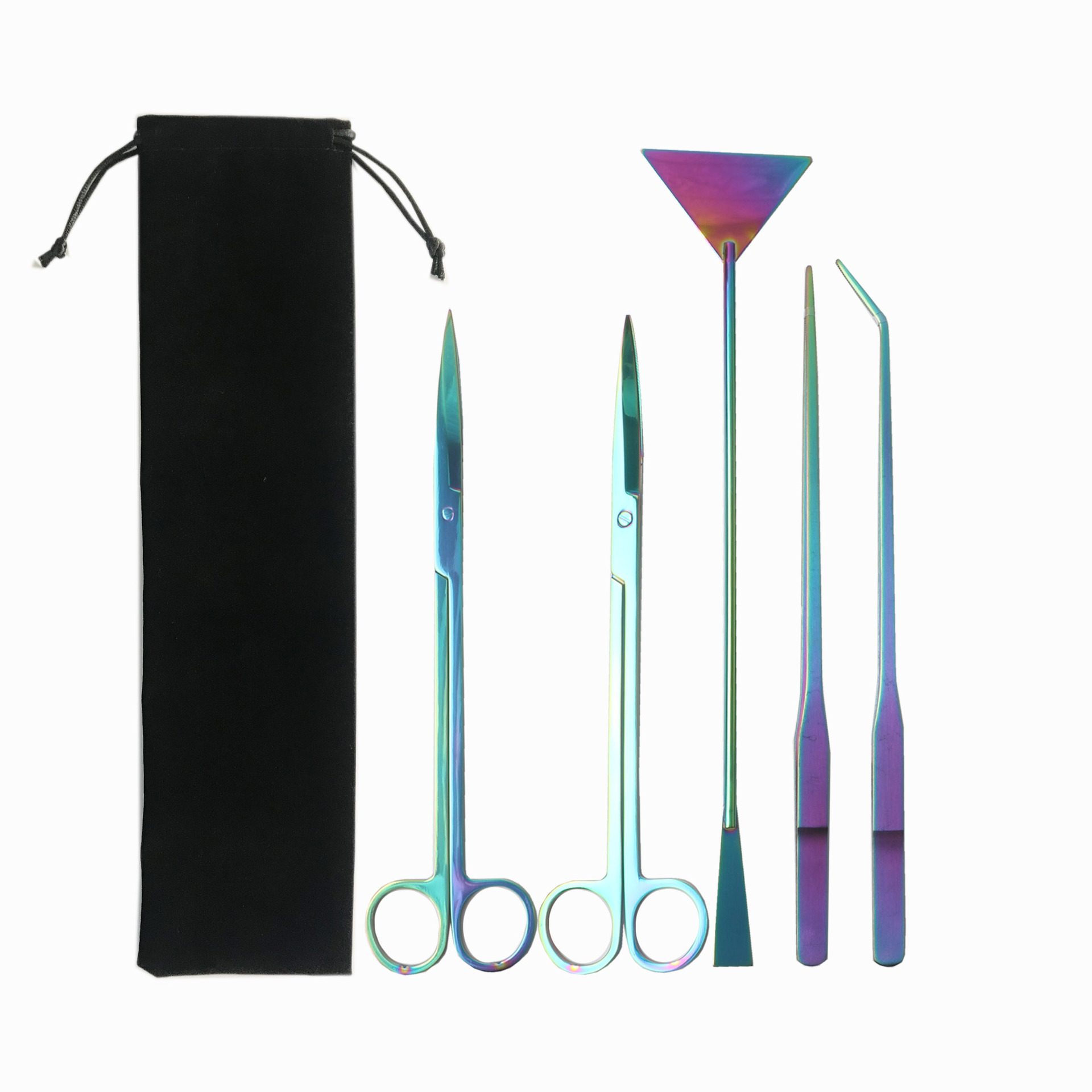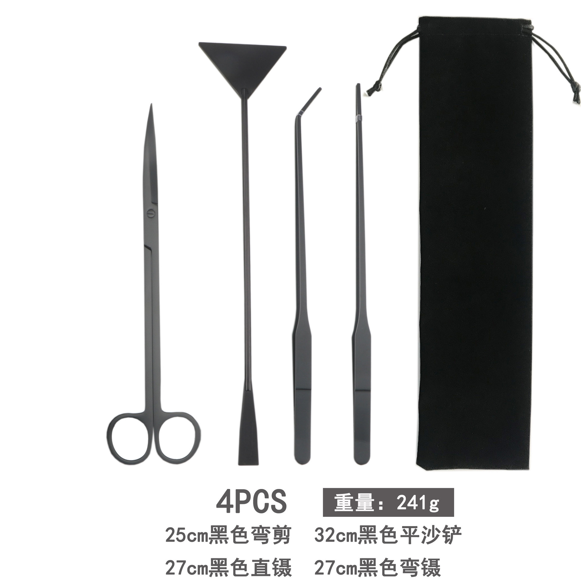 천 벨벳 가방 물 잔디 가위 네 조각 물고기 탱크 크로스 국경 조경 도구 세트 스테인레스 스틸 물 잔디 가위 클립